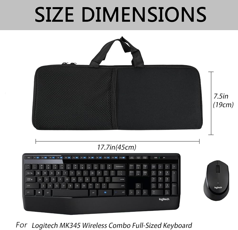 This keyboard case is designed to fit the Logitech Mk345 Wireless Keyboard and measures 17.7 x7.5in (45 x 19cm) which is perfect for the Logitech MK270 Wireless Keyboard