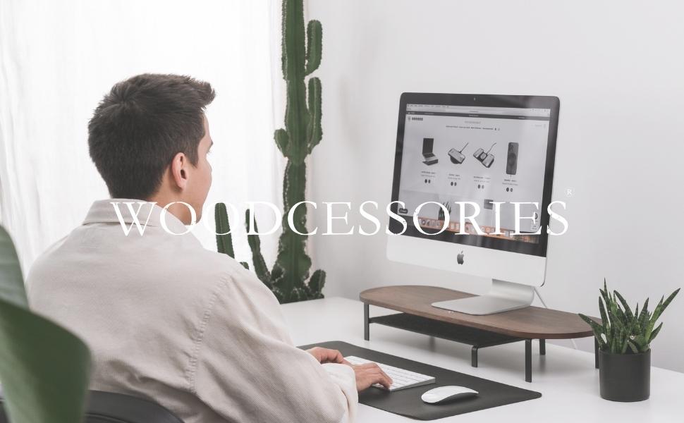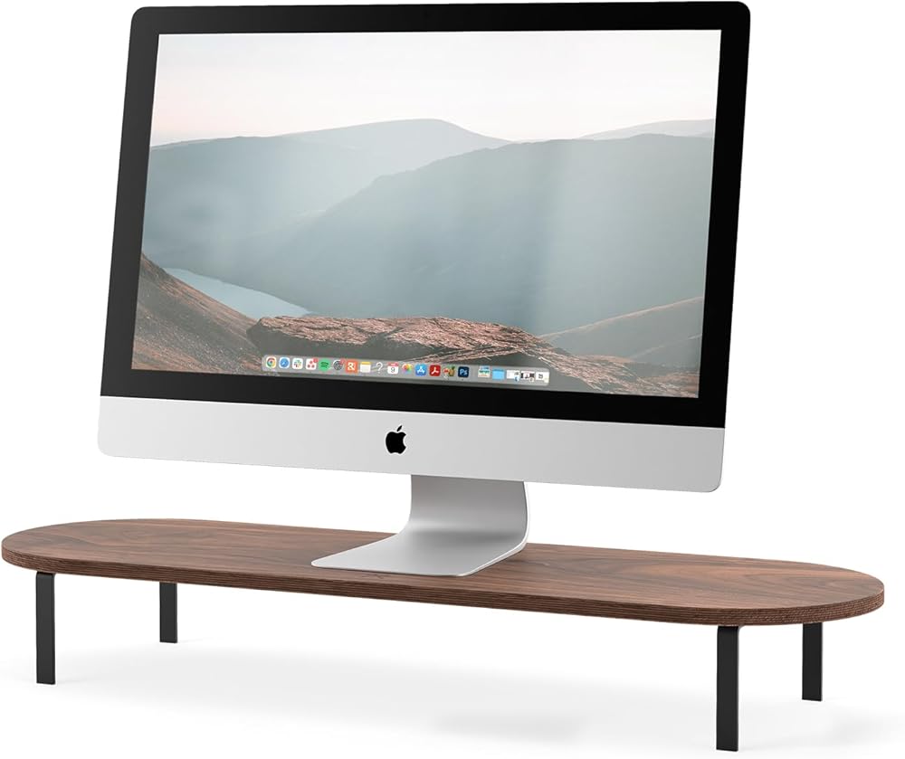 حامل شاشة خشبي فاخر: مصنوع من خشب الجوز الرائع، حامل الشاشة الخشبي الصلب هذا يرفع شاشتك للحصول على عرض مريح مثالي، ويقلل الضغط ويزيد الإنتاجية.