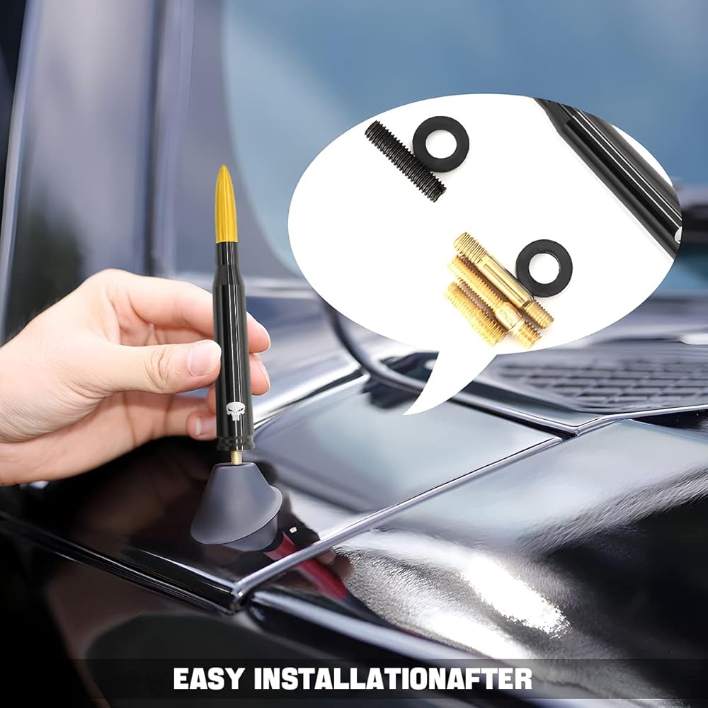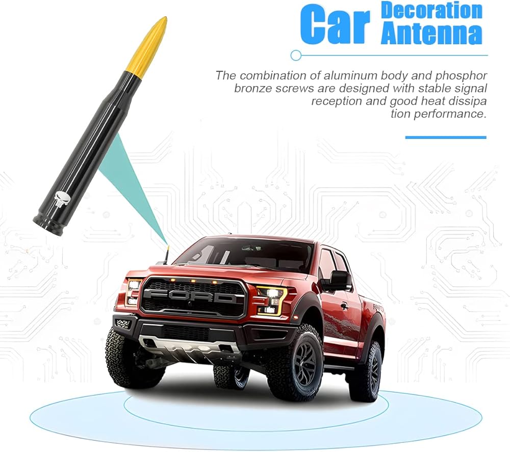 【Unique Design】: This truck exterior decoration looks cool and unique. Its appearance is in the shape of a bullet. Your car will have a beautiful and fashionable look with this bullet antenna. We have so many colors for you to choose, black, silver, red, blue and so on. It can also be customized with skull design. You will be pleased with the look of the bullet antenna.