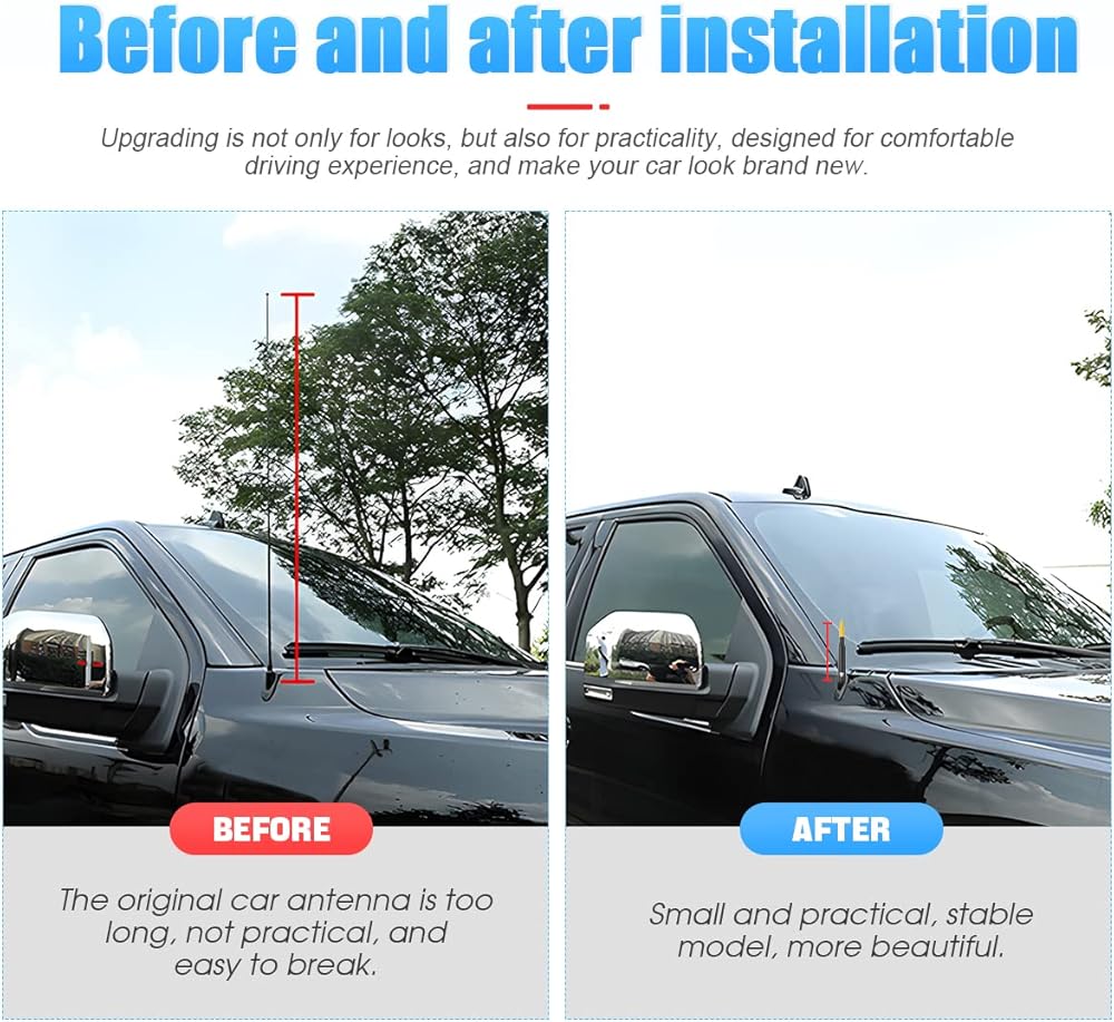 【Easy to Install】: This stereo bullet antenna is easy to put on, it only takes you a few minutes to complete the installation. First, unscrew the old antenna from the vehicle, then select the right size screw for your automobile and the last step is to screw the new one on. It's so simple that you can do it on your own, without additional tools.