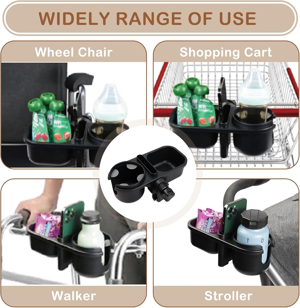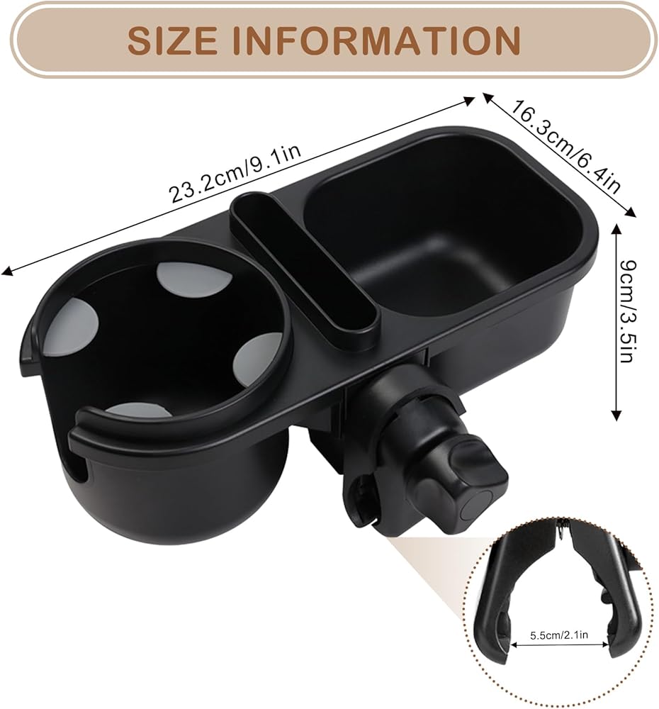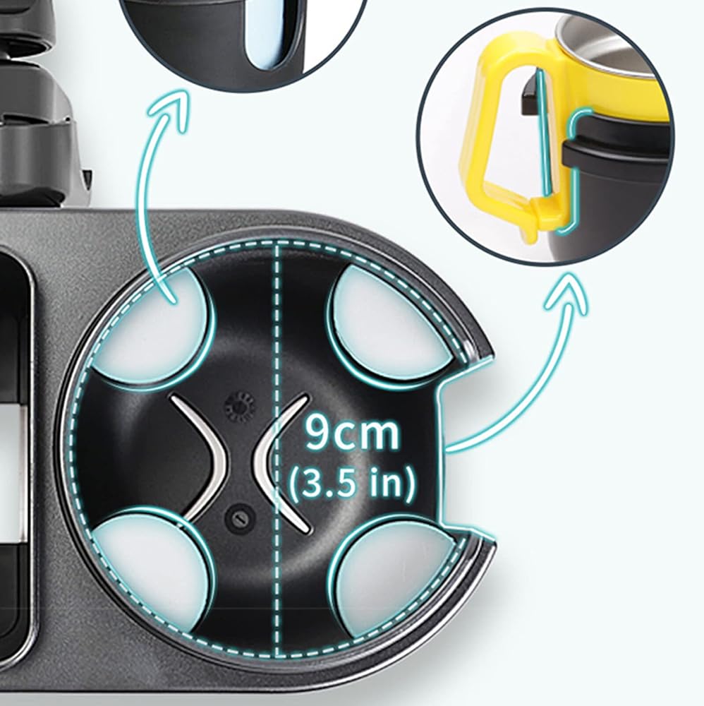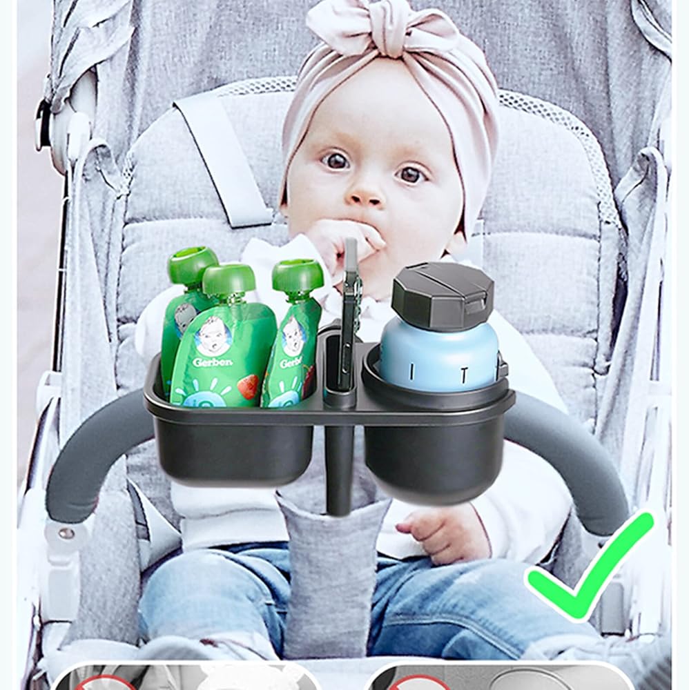 【صينية الوجبات الخفيفة لعربة الأطفال 3 في 1】حامل أكواب عالمي 3 في 1، وحامل هاتف وصينية الوجبات الخفيفة رائعة للسفر وأثناء التنقل، مما يحرر يديك. سهل التركيب دون الحاجة إلى أداة إضافية.