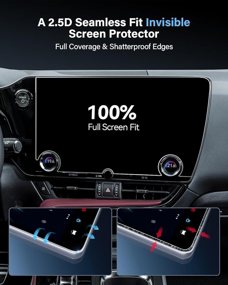 • 【SIMPLE INSTALLATION】 Featuring perfect 2.5D arc edges and innovative automatic exhaust technology, the protector ensures a bubble-free installation. It comes with a complete cleaning kit and detailed instructions, specifically tailored for your car model, for a hassle-free application.