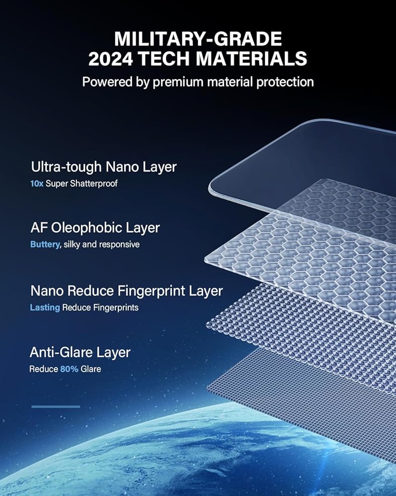 • 【ANTI-FINGERPRINT & EASY MAINTENANCE】 Treated with an advanced AF vacuum plating oleophobic hydrophobic coating, our screen protector resists fingerprints and smudges. Easy to clean with just a microfiber cloth, it maintains a pristine appearance with minimal effort.