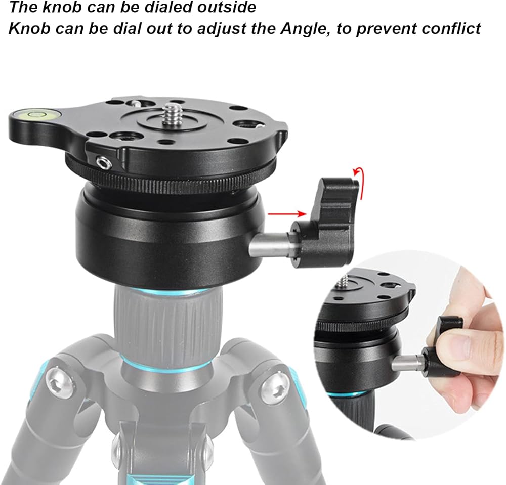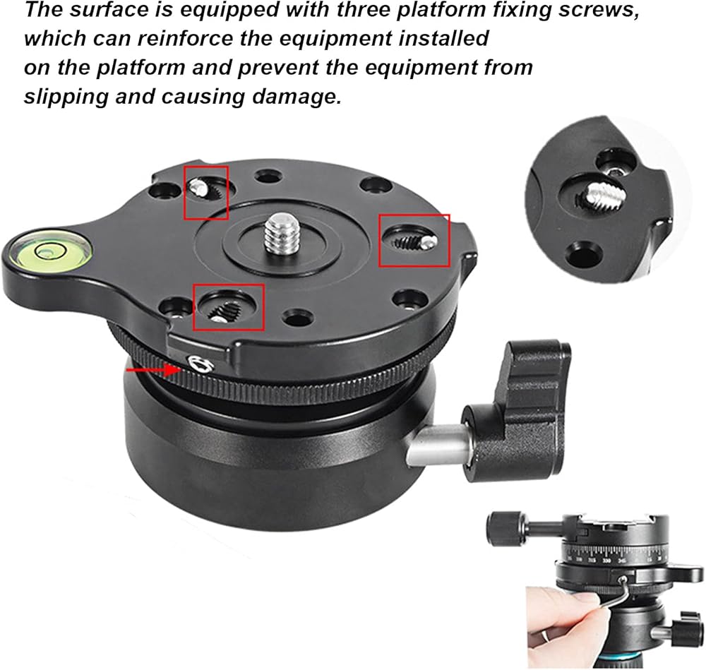 توافق قوي: مزود بمسمار 1/4 بوصة وفتحة برغي 3/8 بوصة، يمكن توصيل الحامل البانورامي أو توصيله بالكاميرا، كما أنه مزود بأداة مستوى، والتصوير الأفقي أكثر دقة.