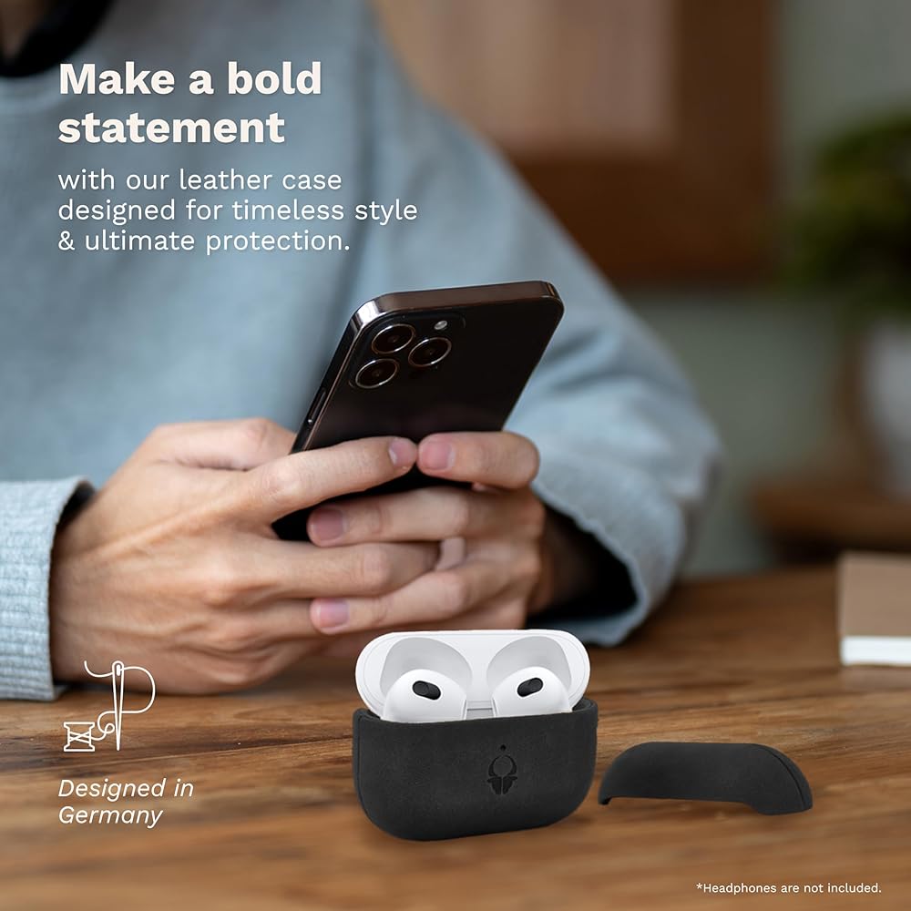 • حافظة حماية فاخرة لـ AIRPODS PRO: مصنوعة من جلد محبب عالي الجودة، توفر حافظة AirPods Pro هذه حماية فائقة وأناقة. مثالية لـ AirPods Pro (الجيل الثاني والثالث)، فهي تناسب بشكل مريح وتعزز مظهر سماعات الأذن الخاصة بك