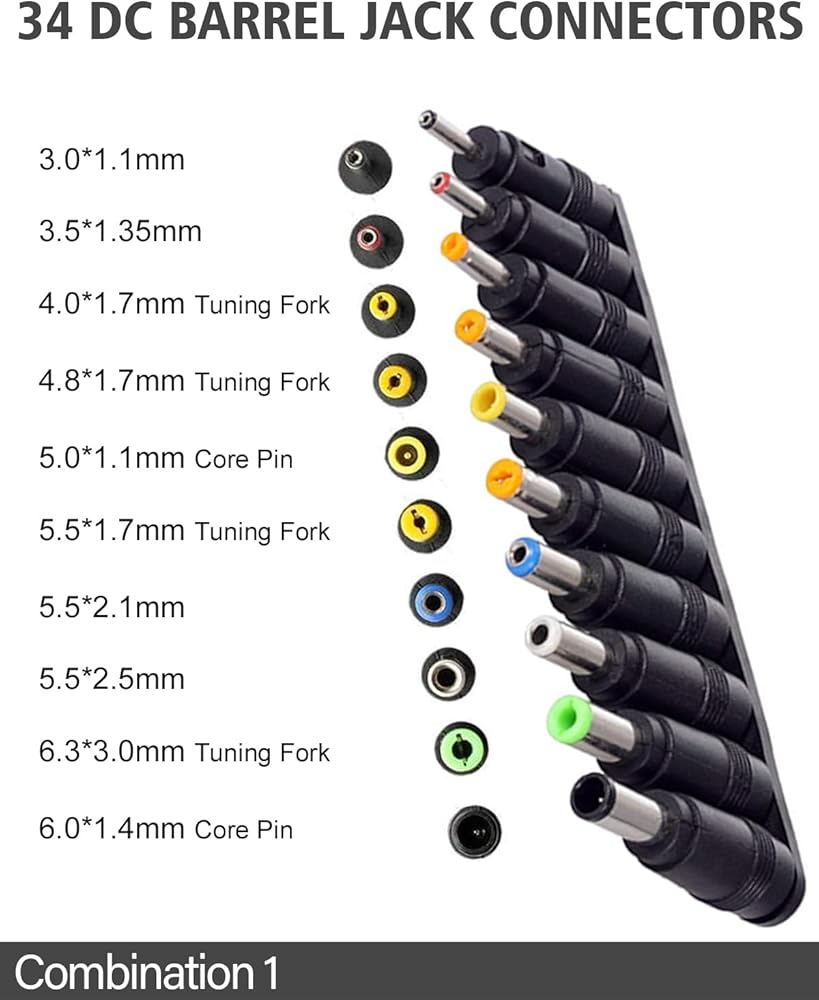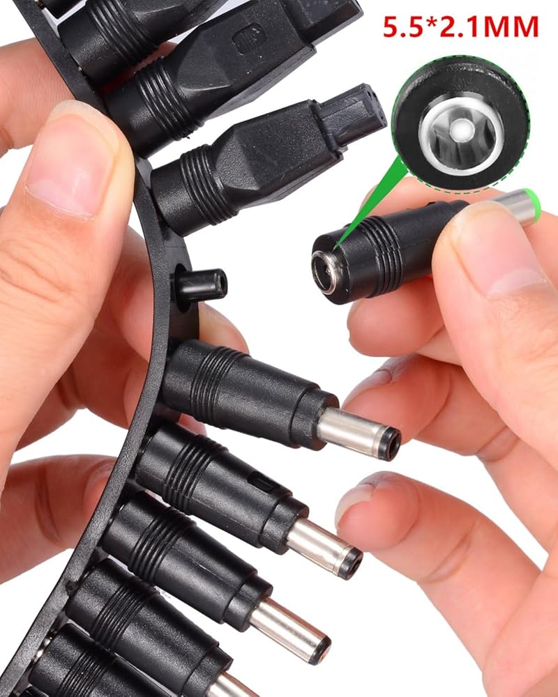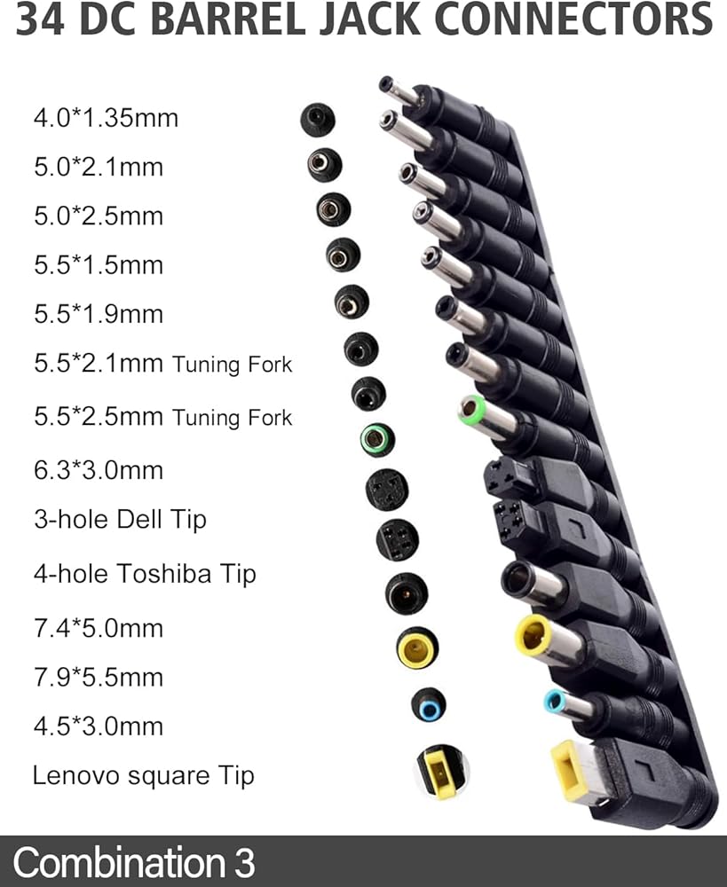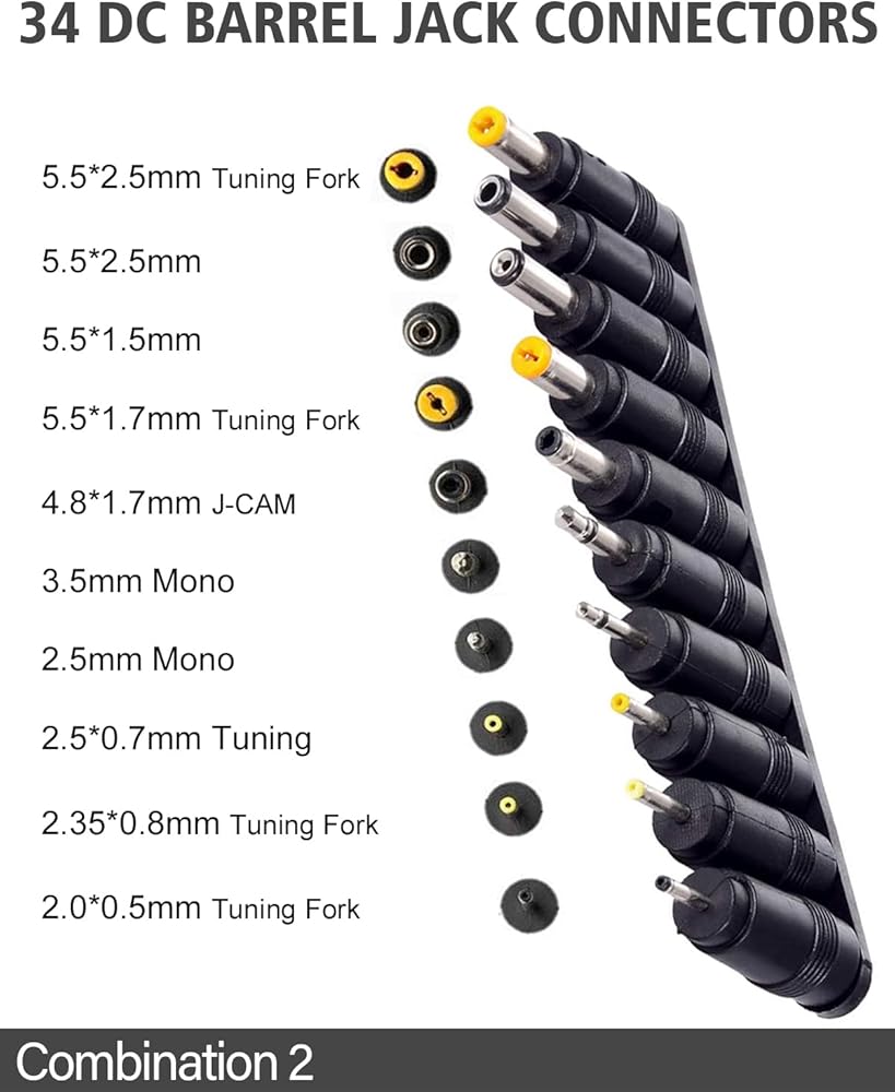 [مجموعات توصيل التيار المستمر للموصل العالمي]: يتضمن المنتج قابس تيار مستمر مكون من 34 قطعة. (✅ قبل الشراء، يرجى التحقق مما إذا كان حجم قابس التيار المستمر للمحول الخاص بك هو 5.5*2.1 ملم و5.5*2.5 ملم.)