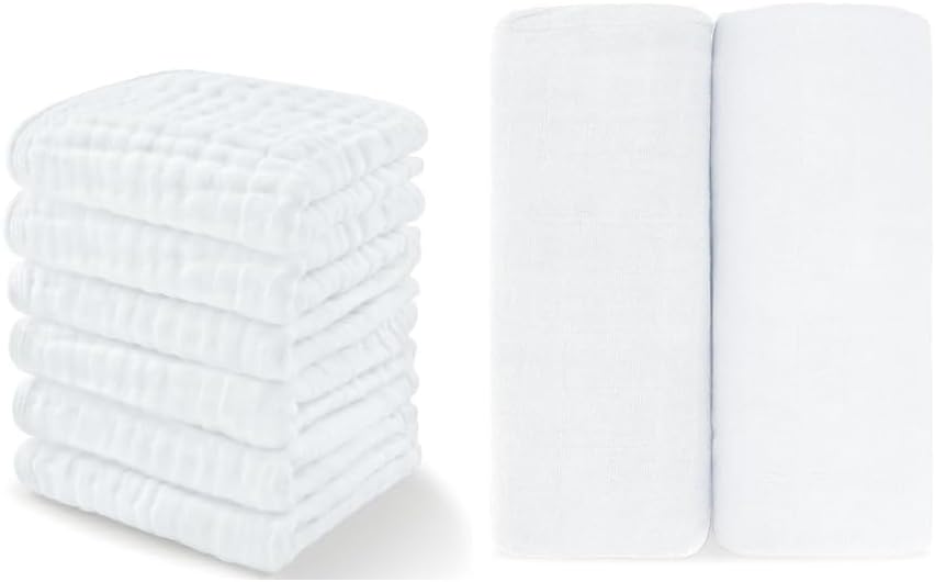 مجموعة مناشف قطن الموسلين الفاخرة - كاملة مع عشرة مناشف فردية من قطن الموسلين بنسبة 100% لحديثي الولادة والأطفال الرضع، تتميز مناشف القطن الخاصة بنا بالنعومة والامتصاص ومثالية لغسل الأيدي الصغيرة والجسم بالكامل أثناء وقت الاستحمام.