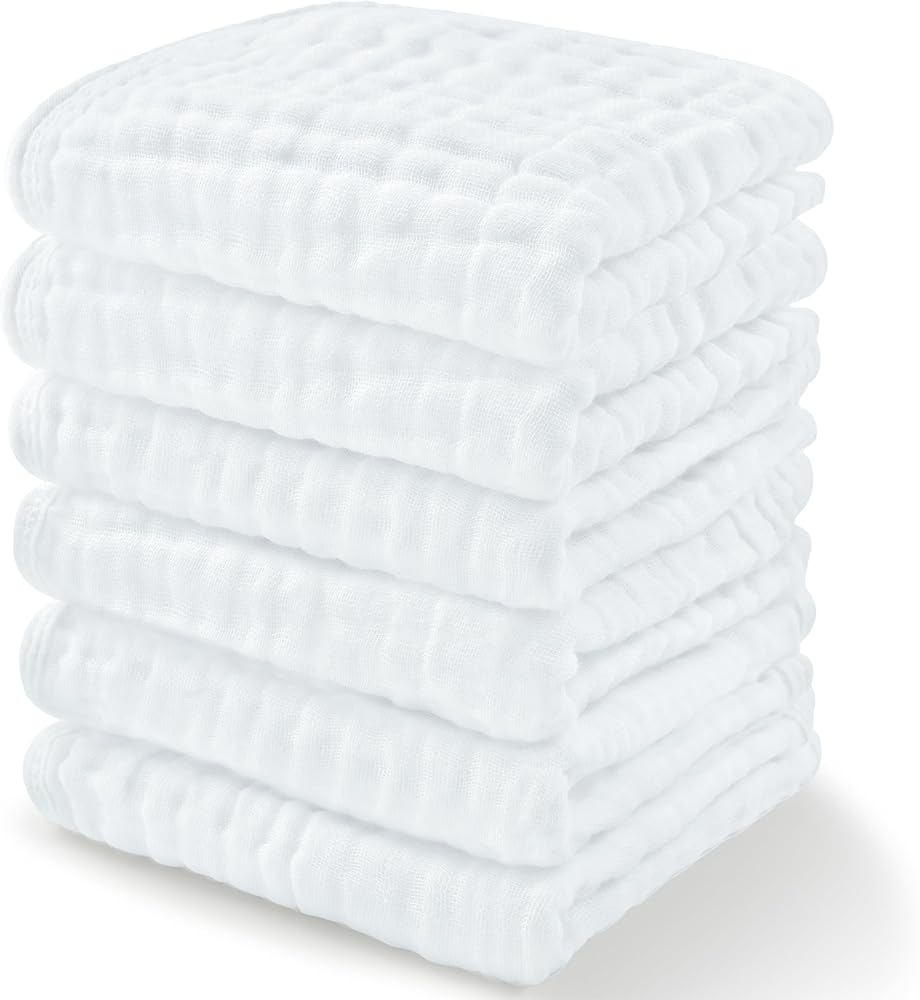 مناشف كبيرة فاخرة من قطن الموسلين مقاس 10 × 10 بوصات - مناشف الوجه المريحة مصنوعة بحجم كبير 10 × 10 بوصات وتأتي في عبوة مريحة مكونة من 6 قطع.