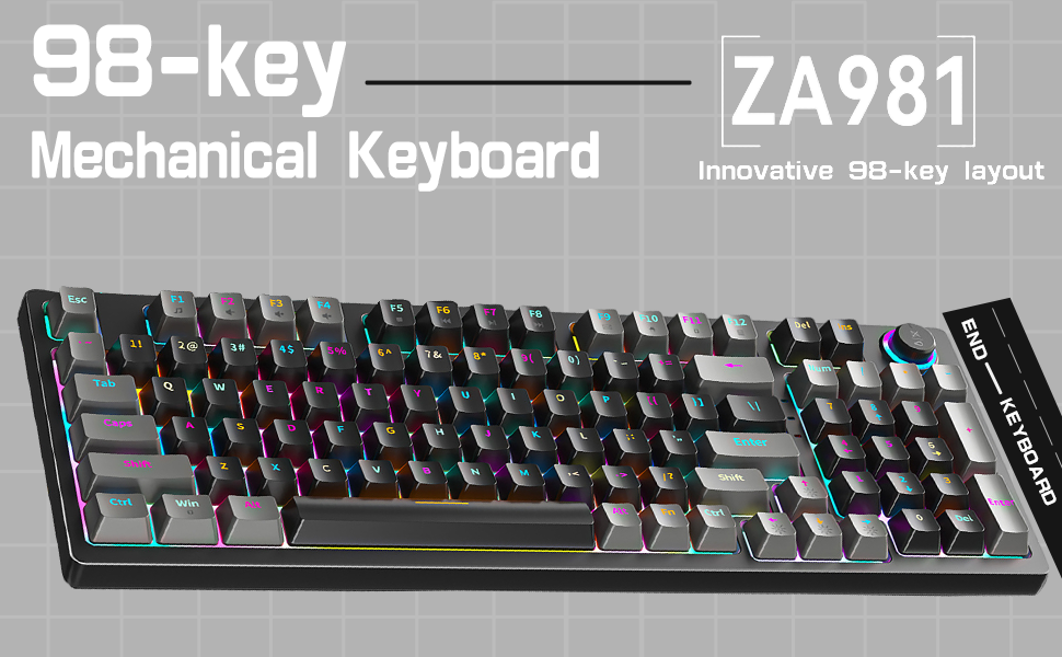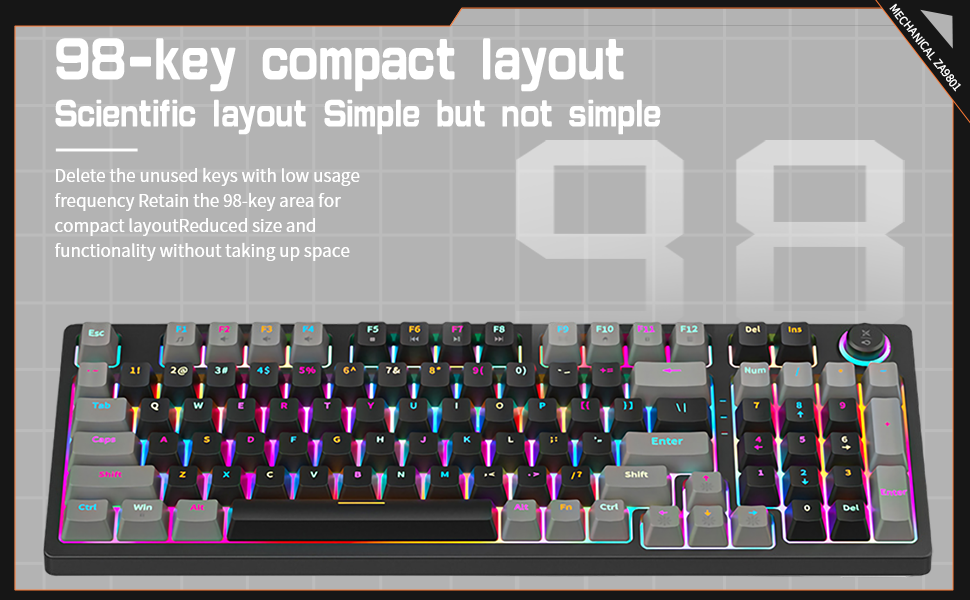 SAMA ZA981B 98-Key لوحة مفاتيح ميكانيكية متعددة الوظائف للألعاب بإضاءة خلفية مع USB لأجهزة الكمبيوتر المكتبية وأجهزة الكمبيوتر المحمولة