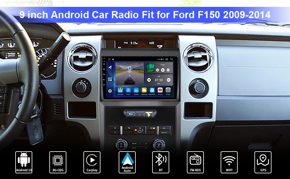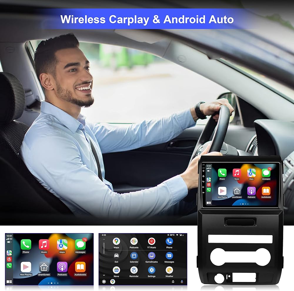 ترقية راديو ستيريو للسيارة 4 جيجابايت + 32 جيجابايت Android 13 لسيارة Ford F150 2009-2012 مع Carplay اللاسلكي وAndroid Auto، وحدة رأس عالية الدقة تعمل باللمس 9.2 بوصة مع WiFi Bluetooth FM RDS SWC GPS وكاميرا احتياطية يدوية AC
