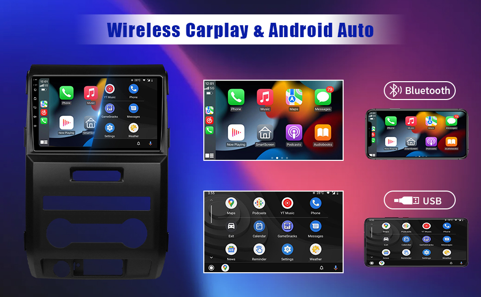 【تشغيل لاسلكي وAndroid Auto】تشغيل لاسلكي ووظيفة Android Auto، لا حاجة لتوصيل كابل USB، ودعم استخدام المساعد الصوتي الذكي أو لمس الشاشة، يمكنك الحصول على الاتجاهات، وإجراء المكالمات، وإرسال واستقبال الرسائل، والاستمتاع بالموسيقى وما إلى ذلك. طريقة أكثر ذكاءً وأمانًا ومتعة لاستخدام هاتفك في السيارة، والحفاظ على تركيزك واتصالك وترفيهك. الآن يمكنك الاستمتاع بجميع مزايا هاتفك دون إبعاد عينيك عن الطريق.