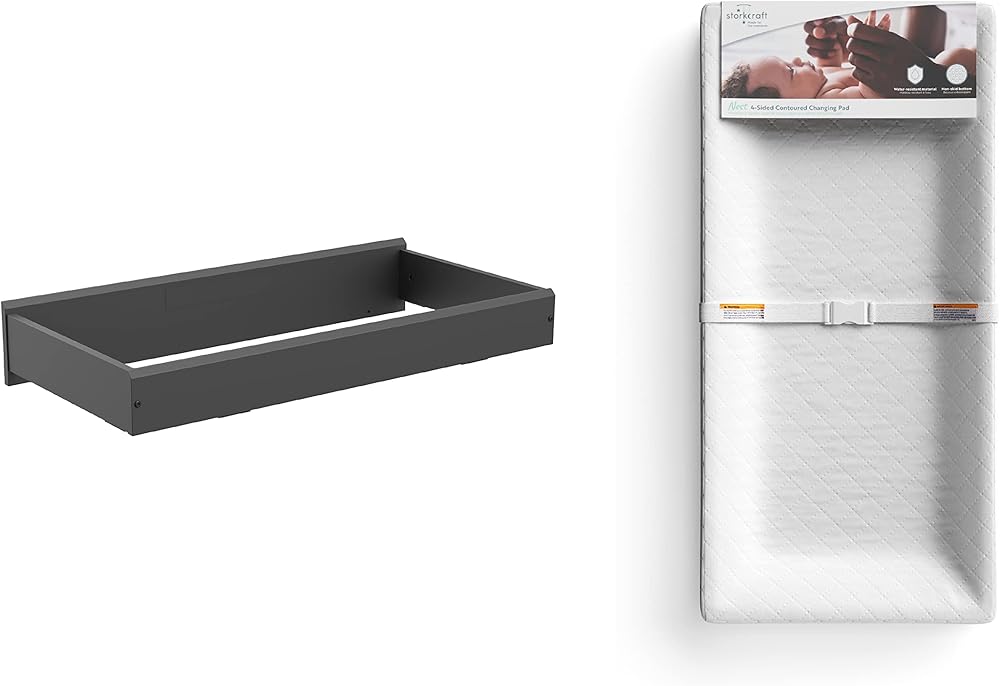 Get the most out of your Storkcraft Alpine, Brookside, Crescent or Graco Noah 6-Drawer Double Dresser with the Storkcraft Nest Changing Topper. Designed to exclusively fit the Storkcraft Nest 4-Sided Contoured Changing Pad (does not fit standard full-size changing pad), and crafted to fit seamlessly on top of your Storkcraft Alpine, Brookside, Crescent, and Graco Noah 6-drawer dressers, the Storkcraft Nest Changing Topper is a convenient, space-saving addition to your nursery. Also, to protect the top of your dresser, the Storkcraft Nest Changing Topper has a soft, felt-covered bottom. Easy assembly required. Not compatible with standard full-size changing pads - designed to exclusively fit the Storkcraft Nest 4-Sided Contoured Changing Pad. Exclusively from Storkcraft, proud recipient of the Parent Tested Parent Approved (PTPA) Seal of Approval and 2022 Women's Choice Award for 9 out of 10 Customer Recommended Baby & Kids Furniture. Change pad included. Please note, the main components arrive in separate packages, which may be delivered at different times.
