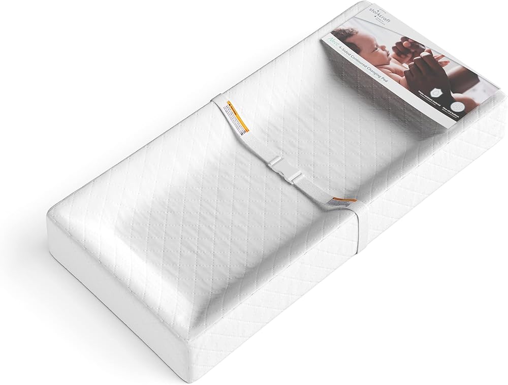 CHANGE PAD IS 4 SIDED AND SAFETY BELT FOR ADDED SECURITY: Water-resistant contoured changing pad features 4 sides and safety belt for your baby's added security when placed on changing pad