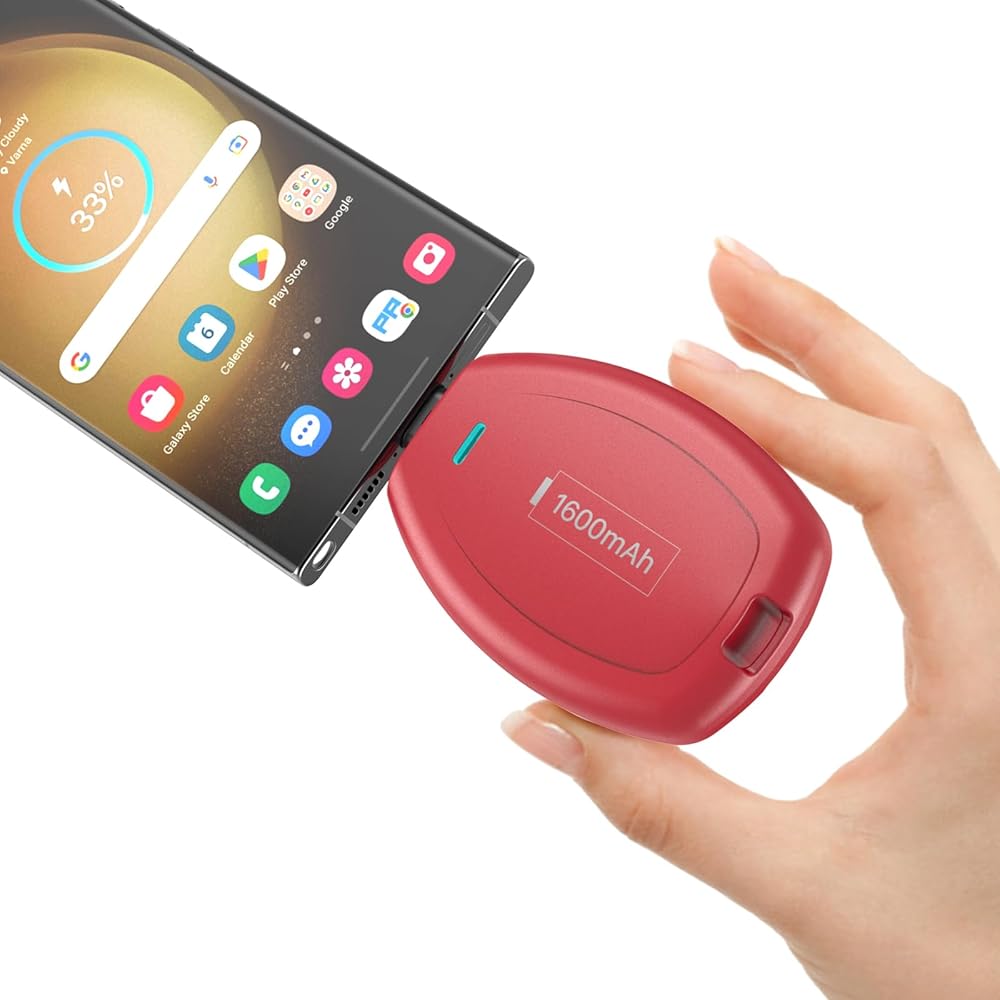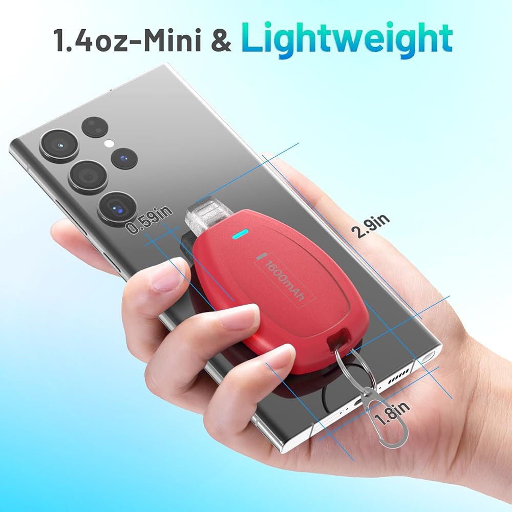 HUAENG USB-C Keychain Portable Charger, 1600mAh Mini Power Bank Ultra-Compact Battery Pack Power Emergency pod for Android Type-C Samsung, Pixel, Moto etc