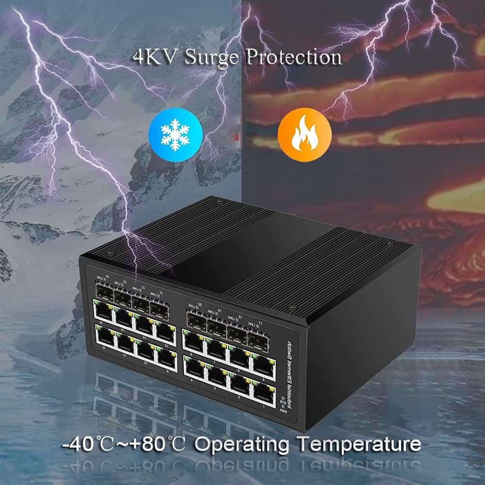 تكوين جيجابت 20 منفذ - يوفر مفتاح إدارة الشبكة 16 منفذ إيثرنت 10/100/1000 ميجابت في الثانية و4 فتحات جيجابت SFP، مما يرضي الاتصالات عالية السرعة والموثوقة لأجهزة متعددة