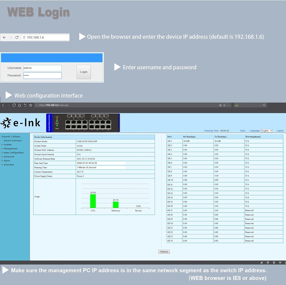 إدارة سهلة للشبكة - يمكن دعم إدارة الويب على شبكة LAN وتحقيق إدارة telnet. إلى جانب أن المفتاح يتوافق مع بروتوكول SNMP ويمكن إدارته بواسطة برنامج NMS