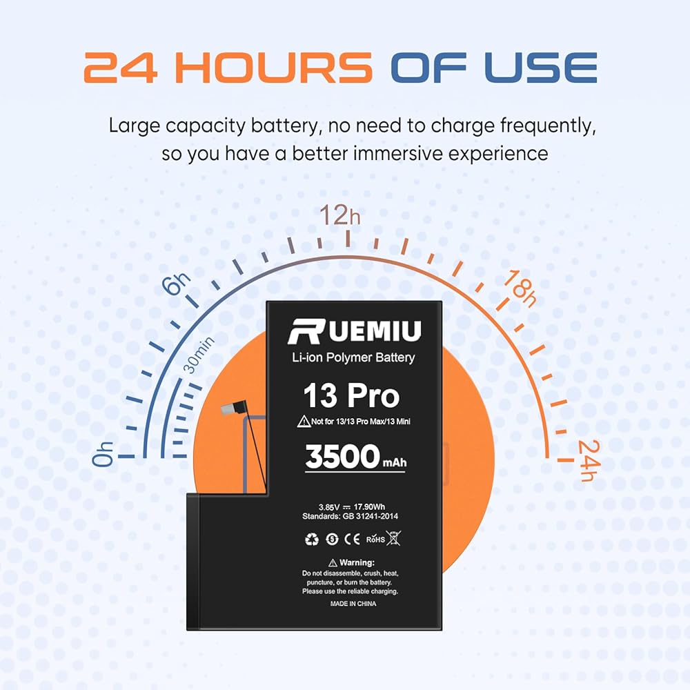 Easy Installation: Replcement Battery for iPhone 13 Pro comes with professional complete repair tool kits and Manual. If you want to replace the battery more easily, we highly recommend you to watch videos about 13 Pro battery replacement on YouTube. Novices can easily install, no need to worry about the installation is too complicated.