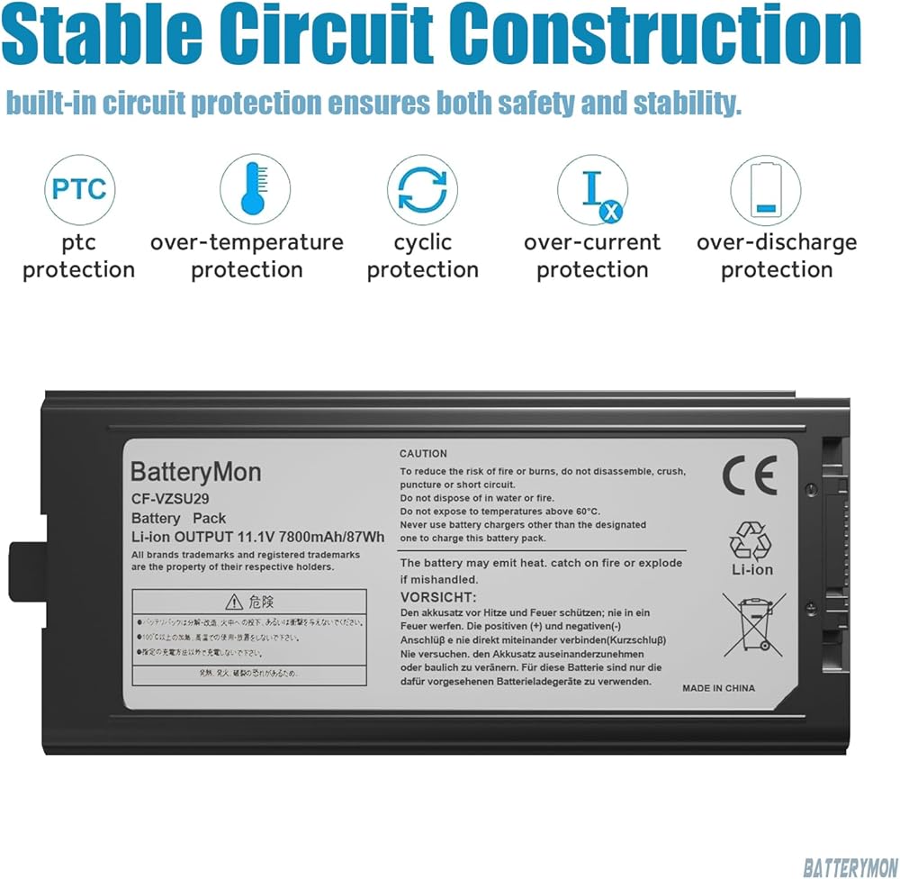 بطارية الكمبيوتر المحمول CF-VZSU29 لجهاز Panasonic CF-29 CF-51 CF-52 Series Toughbook، P/N: CF-VZSU29A CF-VZSU29R CF-VZSU29ASU CF-VZSU29U CF-VZSU29AU (9 خلايا 7800 مللي أمبير في الساعة)