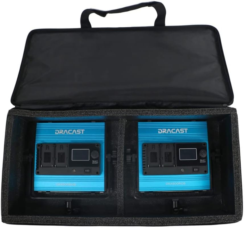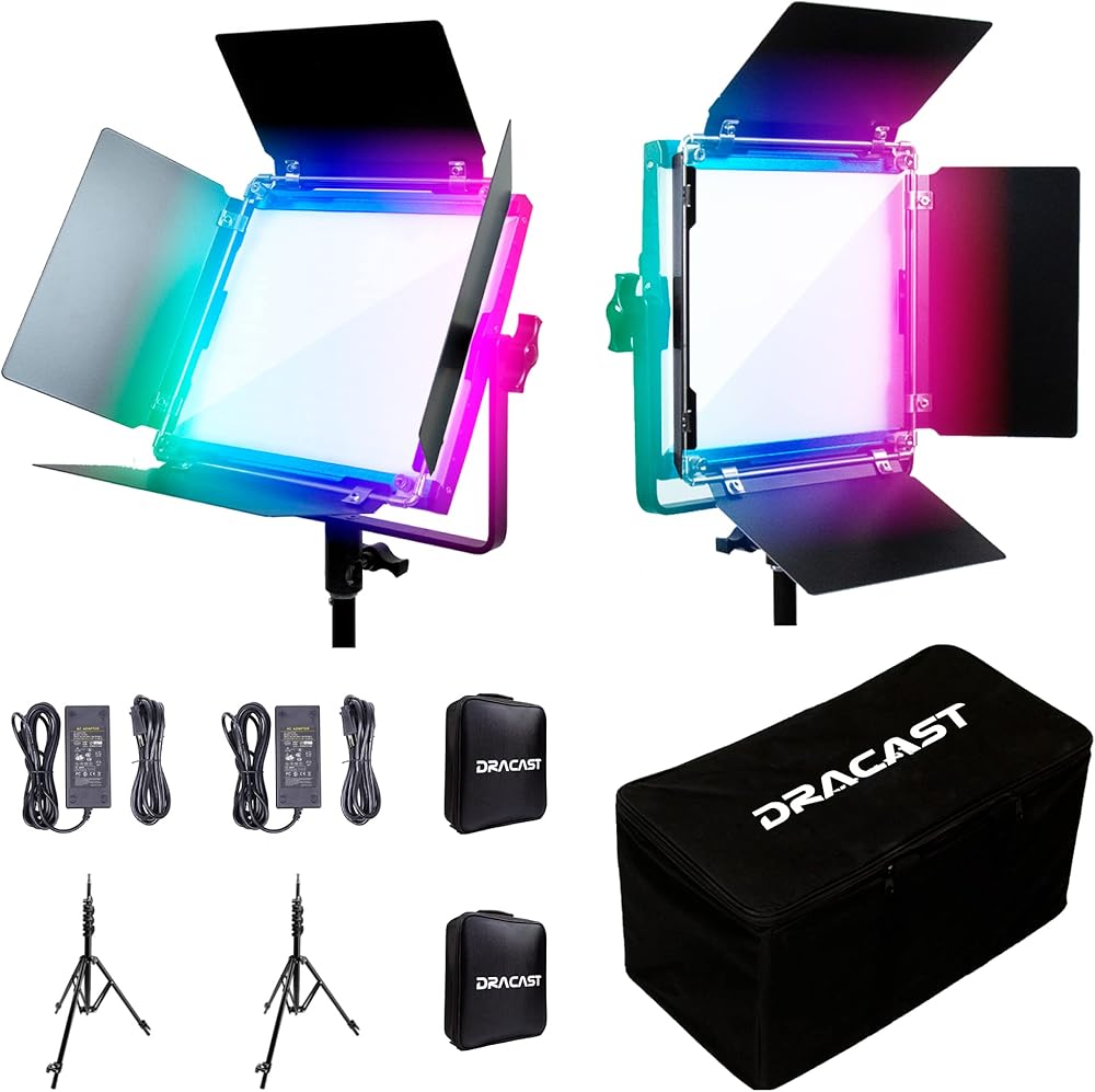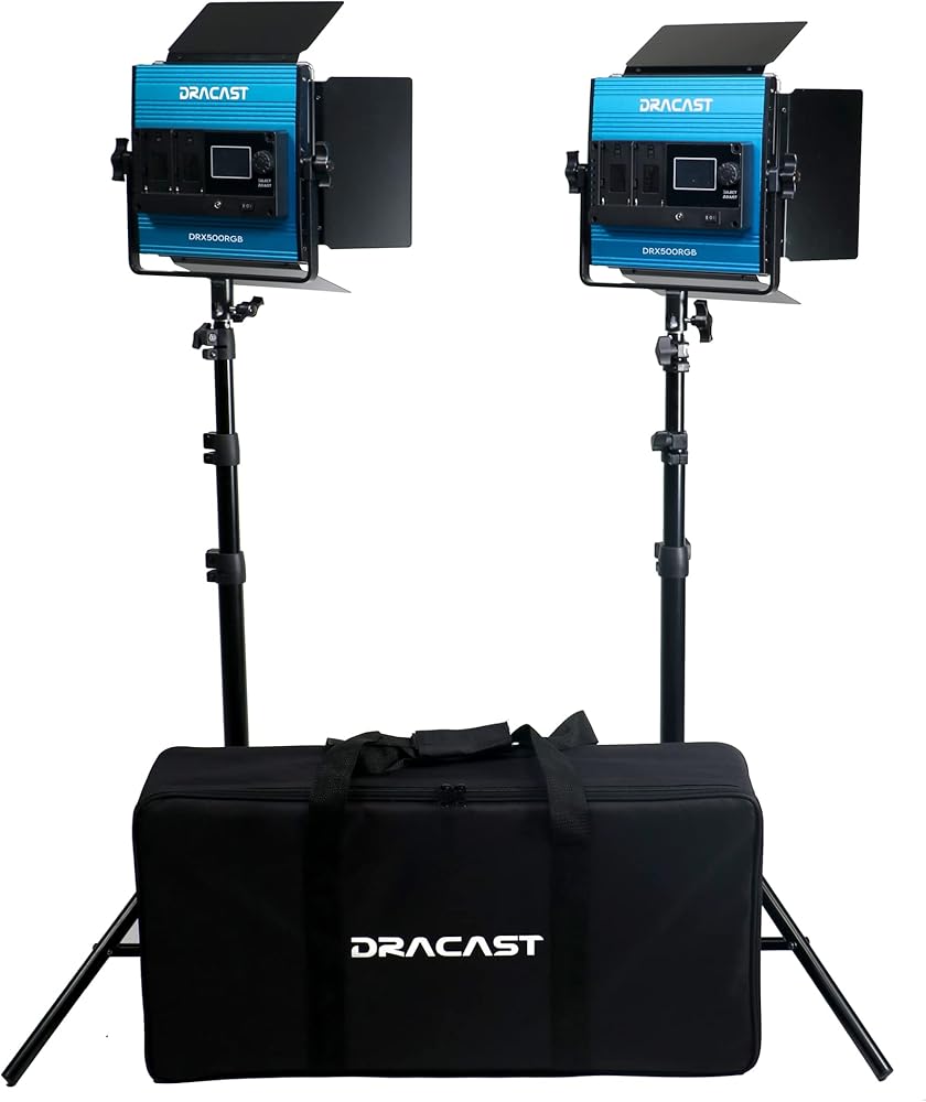 مجموعة Dracast X Series RGB LED500 - عبوتان تتضمن مصابيح لوحة، وحوامل، وأبواب بارندور، وحقيبة سفر | التحكم في تطبيقات البلوتوث | طقم إضاءة فيديو LED RGB + ثنائي اللون 2800K - 8000K | الإضاءة الخافتة 0-100%