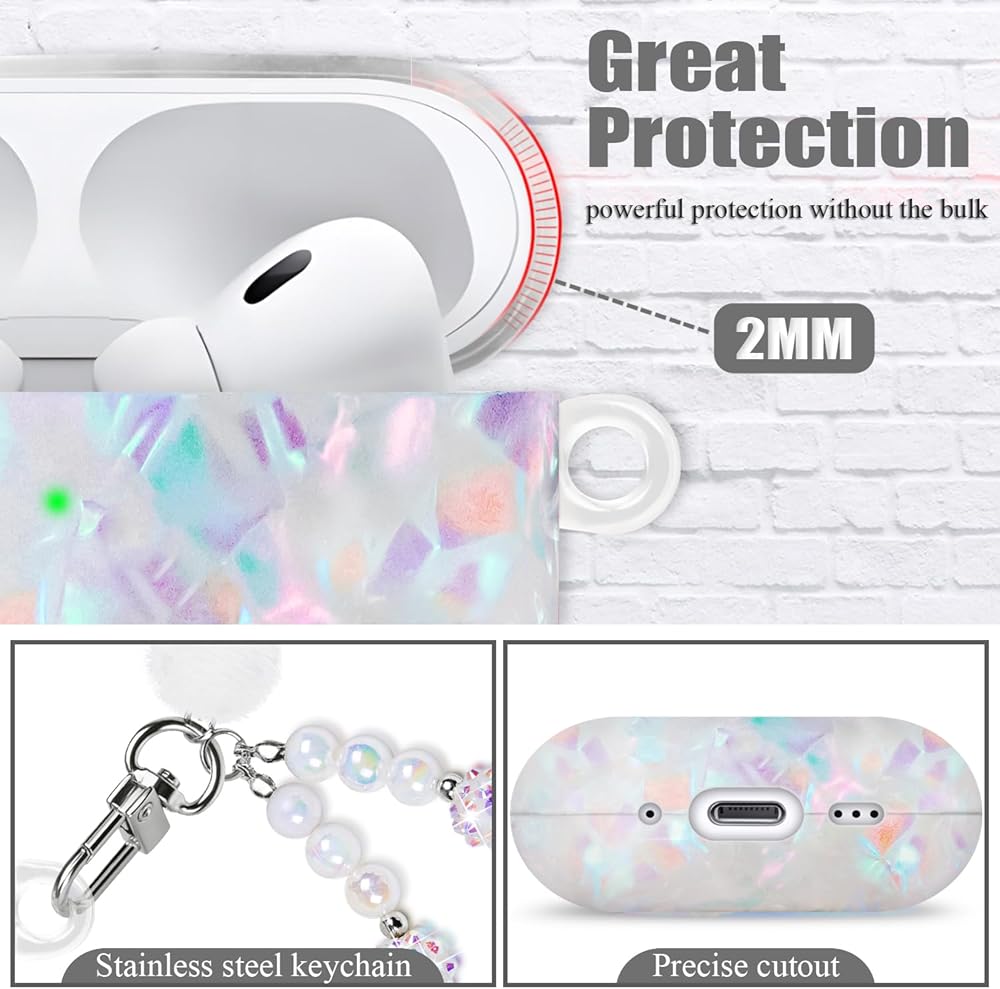 • التوافق المثالي: حرية الوصول إلى جميع الوظائف مع حافظة Pearl Airpod Pro 2. سلسلة المفاتيح الفاخرة تجلب المزيد من الراحة.