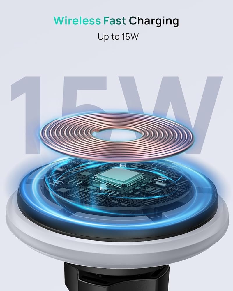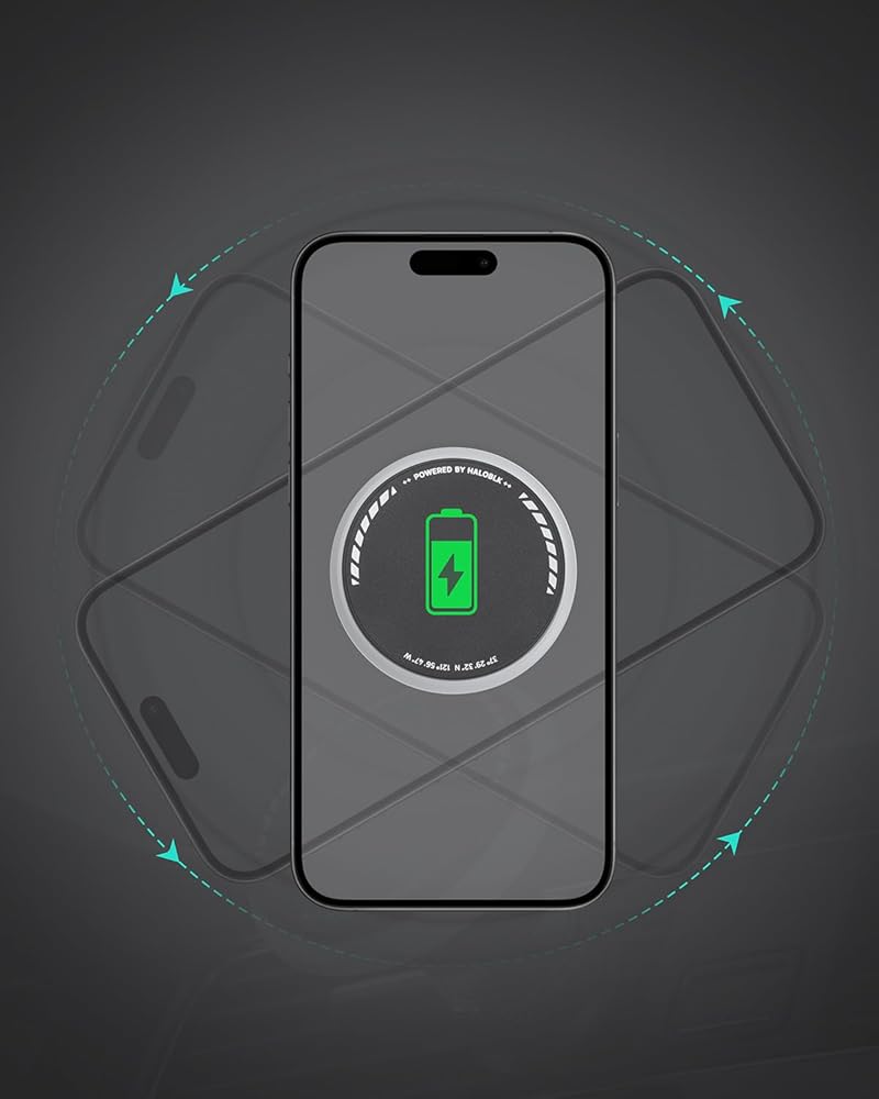 Enhanced Magnetic Stability: Equipped with 12 robust 14N magnets, HALOBLK wireless charger ensures a firm and dependable grip, effectively preventing your phone from falling even during rough and bumpy journeys.