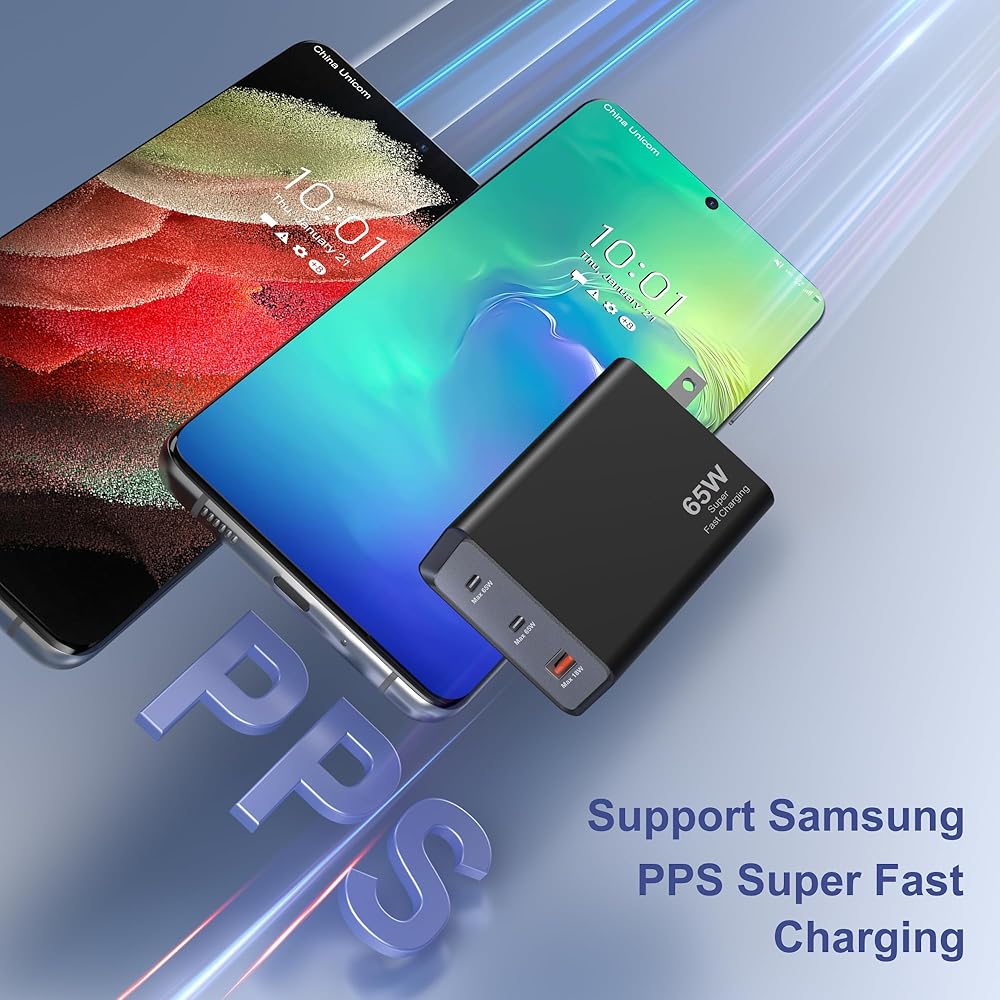 ▷ 【كيفية الحصول على شحن سريع】- ① شحن منفذ واحد: منفذ USB-C1 واحد يدعم 65 وات كحد أقصى، منفذ USB-C2 فردي يدعم 65 وات كحد أقصى، منفذ USB-A فردي يدعم 18 وات كحد أقصى؛ ② شحن بمنفذين: يوصى بتوصيل USB-C1 + USB-C2 (45 واط + 20 واط) أو USB-C1 + USB-A (45 واط + 18 واط) للشحن عالي السرعة. *ملاحظة: قد تختلف سرعة الشحن الفعلية باختلاف الأجهزة وكابلات الشحن.