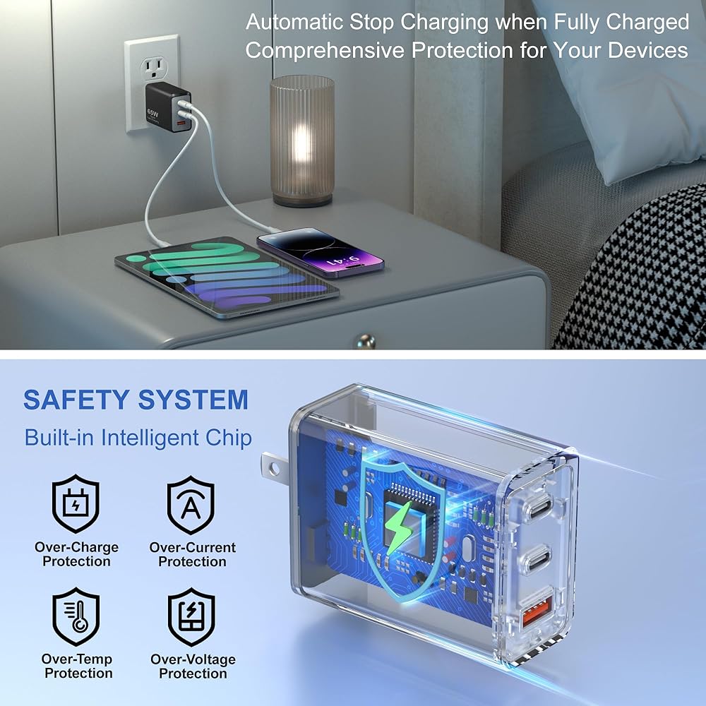 ▷ 【قابس حائط USB آمن وموثوق 】- محول الطاقة USB-C بقدرة 65 وات مزود بشريحة ذكية مدمجة ونظام حماية متعدد يمكنه حماية أجهزتك من الشحن الزائد/السخونة الزائدة/التيار الزائد/الجهد الزائد وقصر الدائرة، سيتوقف الشحن تلقائيًا عند امتلاء الطاقة، مما يضمن الشحن الآمن لأجهزتك. *إذا كانت لديك أي مخاوف بشأن منتجنا، فيرجى إخبارنا مباشرة عبر أمازون.