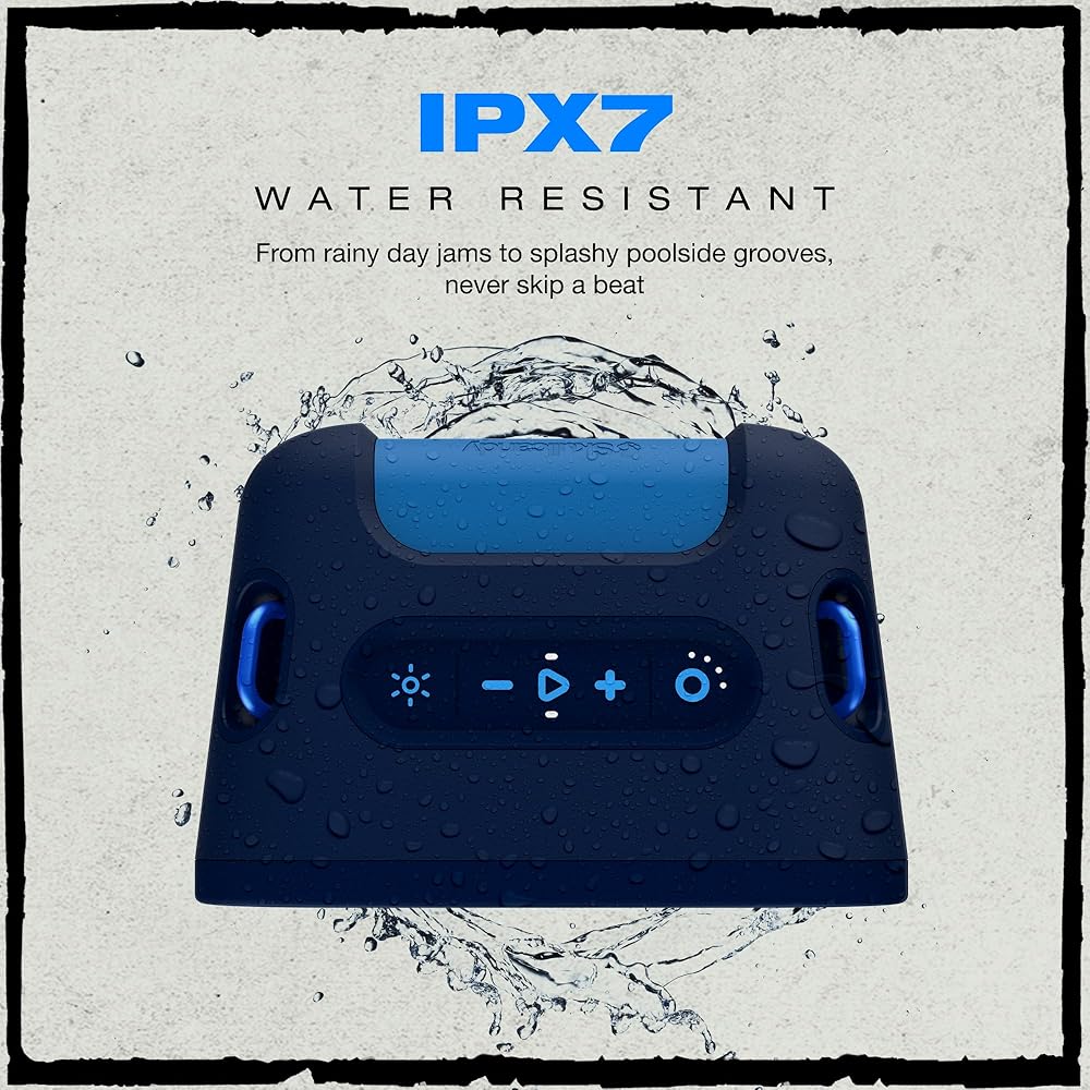 IPX5 Splashproof Outdoor Speaker: There's no need to pack up the music if a little rain threatens your outdoor party — Stomp XL can handle it. With an IPX5 splashproof rating, it can be caught in a full-on downpour and come out cranking.