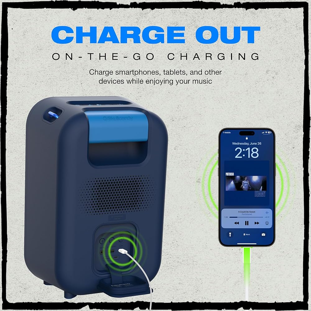 Long-Lasting Battery & USB Charge Out: With up to 12 hours of battery life, the Stomp XL wireless Bluetooth(tm) speaker keeps the party going all night long and won't end the party with an awkward silence. It also has USB-C & USB-A charging output so that your mobile devices can always stay charged.
