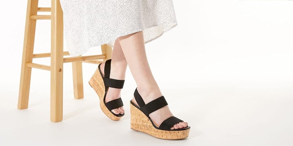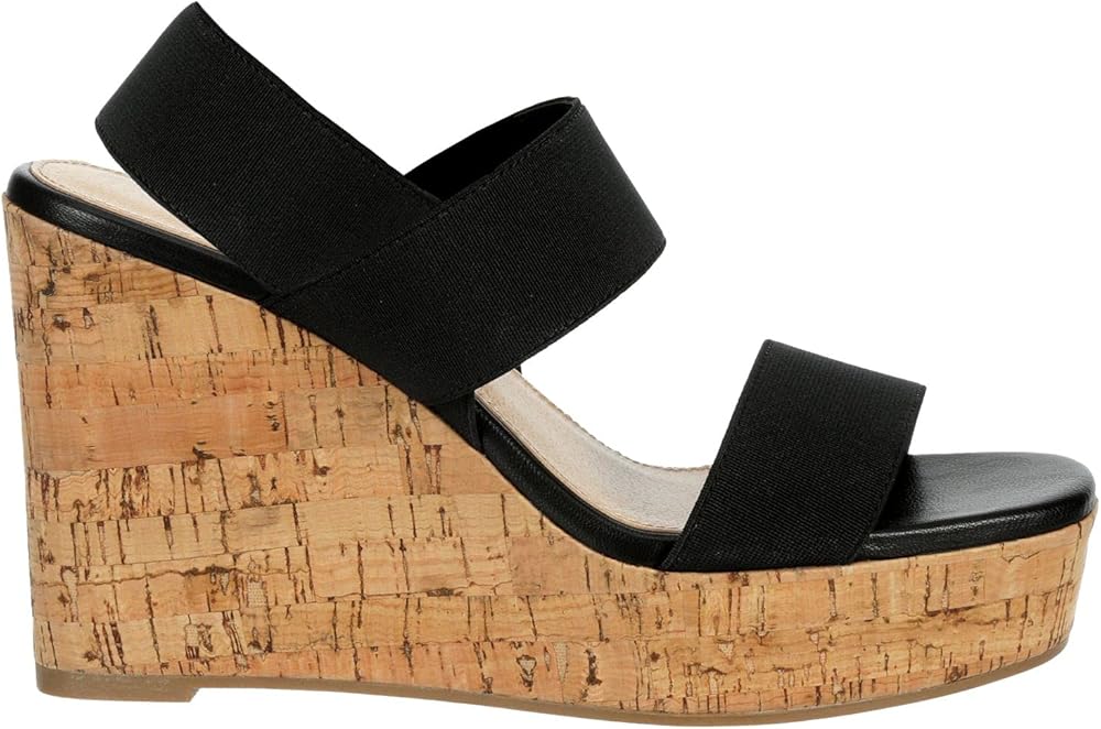 لايملايت - صندل نسائي مفتوح من الأمام بكعب عريض من الفلين مع أشرطة مطاطية