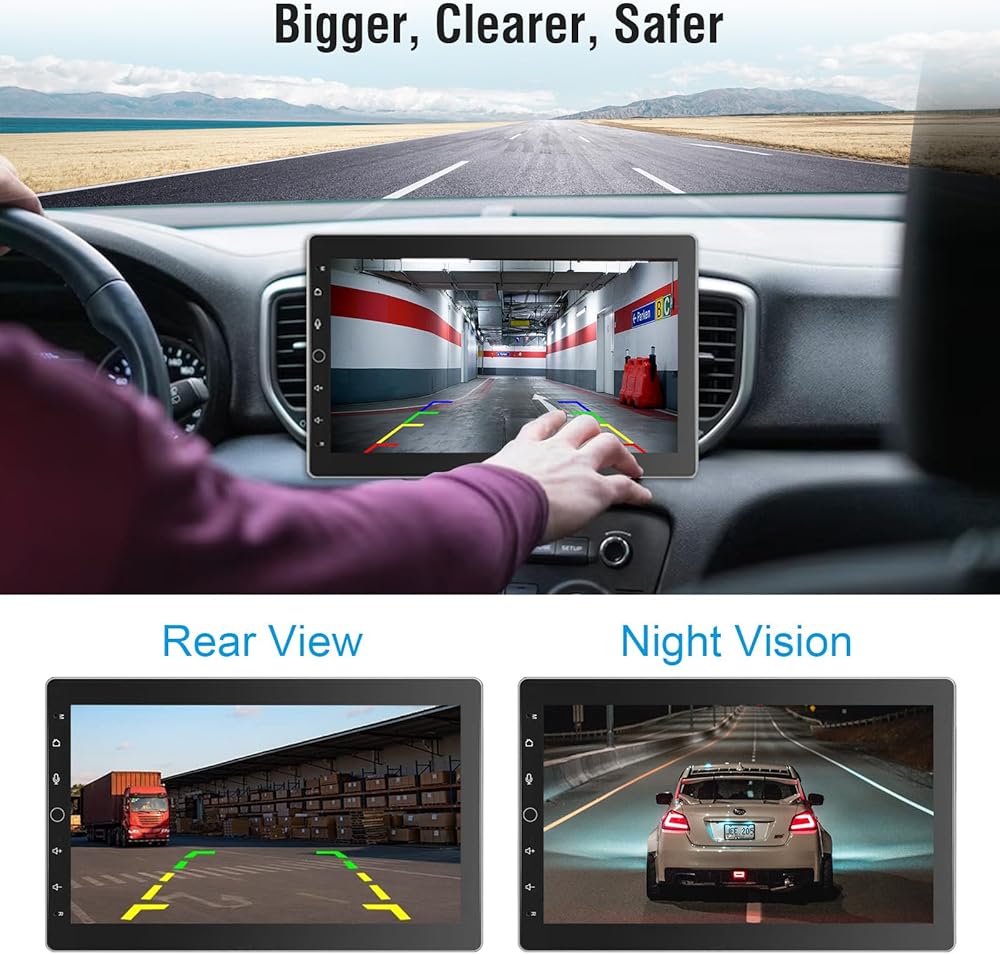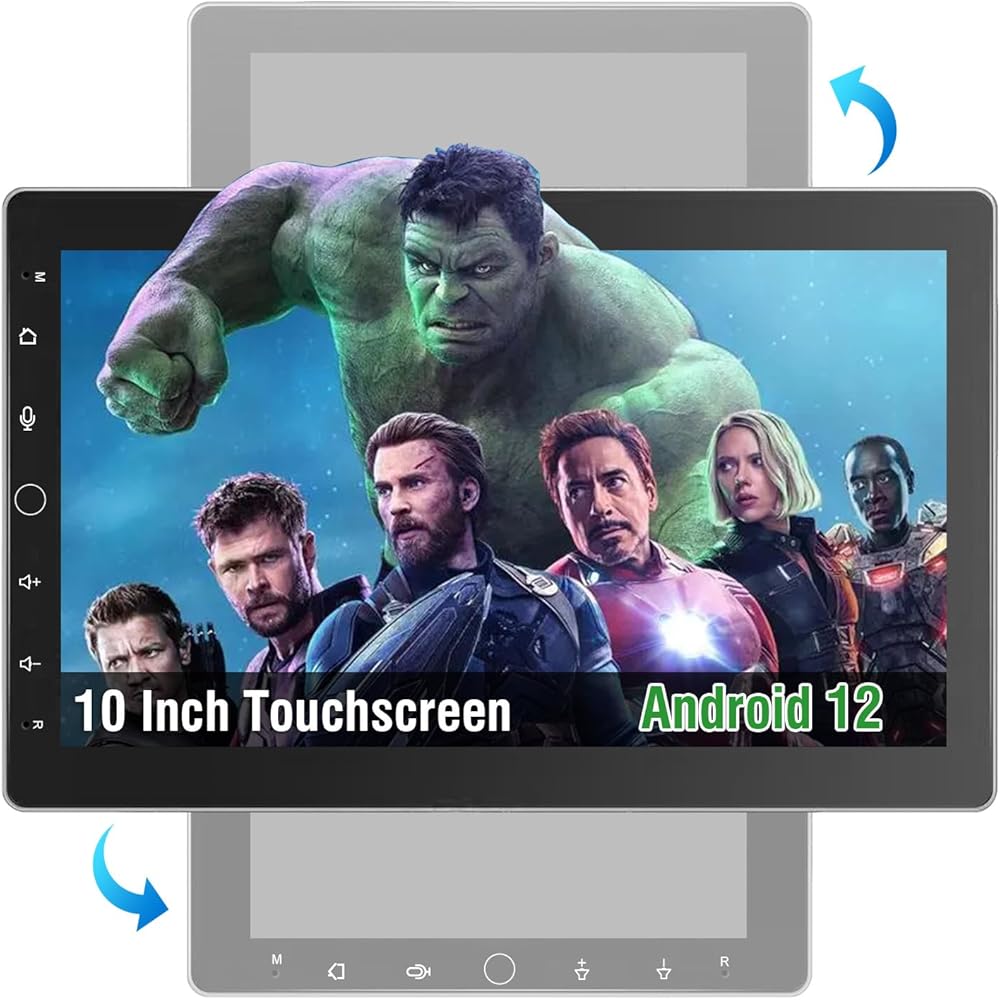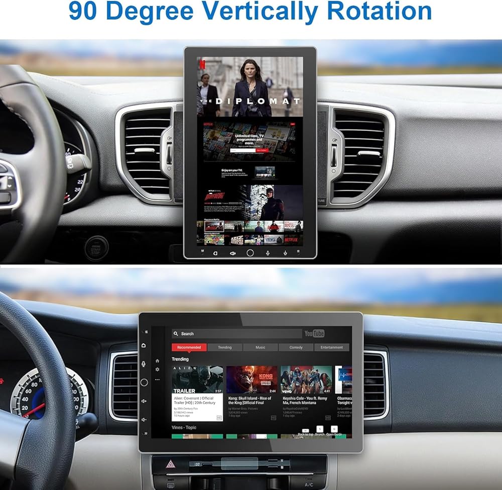 [تدوير 90 درجة عموديًا] - شاشة لمس ستيريو للسيارة مقاس 10 بوصات مع شاشة دوارة 90 درجة! سواء كنت تفضل شاشة عريضة للملاحة أو الاتجاه الرأسي للتصفح عبر قوائم التشغيل، فإن نظام ستيريو السيارة مزدوج الدين الذي يعمل بنظام Android يوفر لك كل ما تحتاجه. لا مزيد من إجهاد رقبتك أو المساس بالرؤية - ما عليك سوى تدوير الشاشة إلى الزاوية التي تريدها بسهولة. عزز تجربة القيادة الخاصة بك مع حرية تخصيص اتجاه الشاشة أثناء التنقل