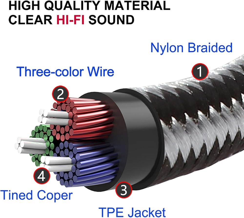 【جميل ومحمول】 يستخدم كابل الصوت picK-me الخاص بنا معدنًا وقماشًا عالي الجودة لضمان نقل جيد وجودة صوت عالية الجودة. اللحاف الخارجي الناعم والصديق للبيئة من مادة PVC غير اللامعة يجعلك تشعر بالراحة. كابل الصوت AUX قابل للتوصيل والتشغيل وسهل الحمل.
