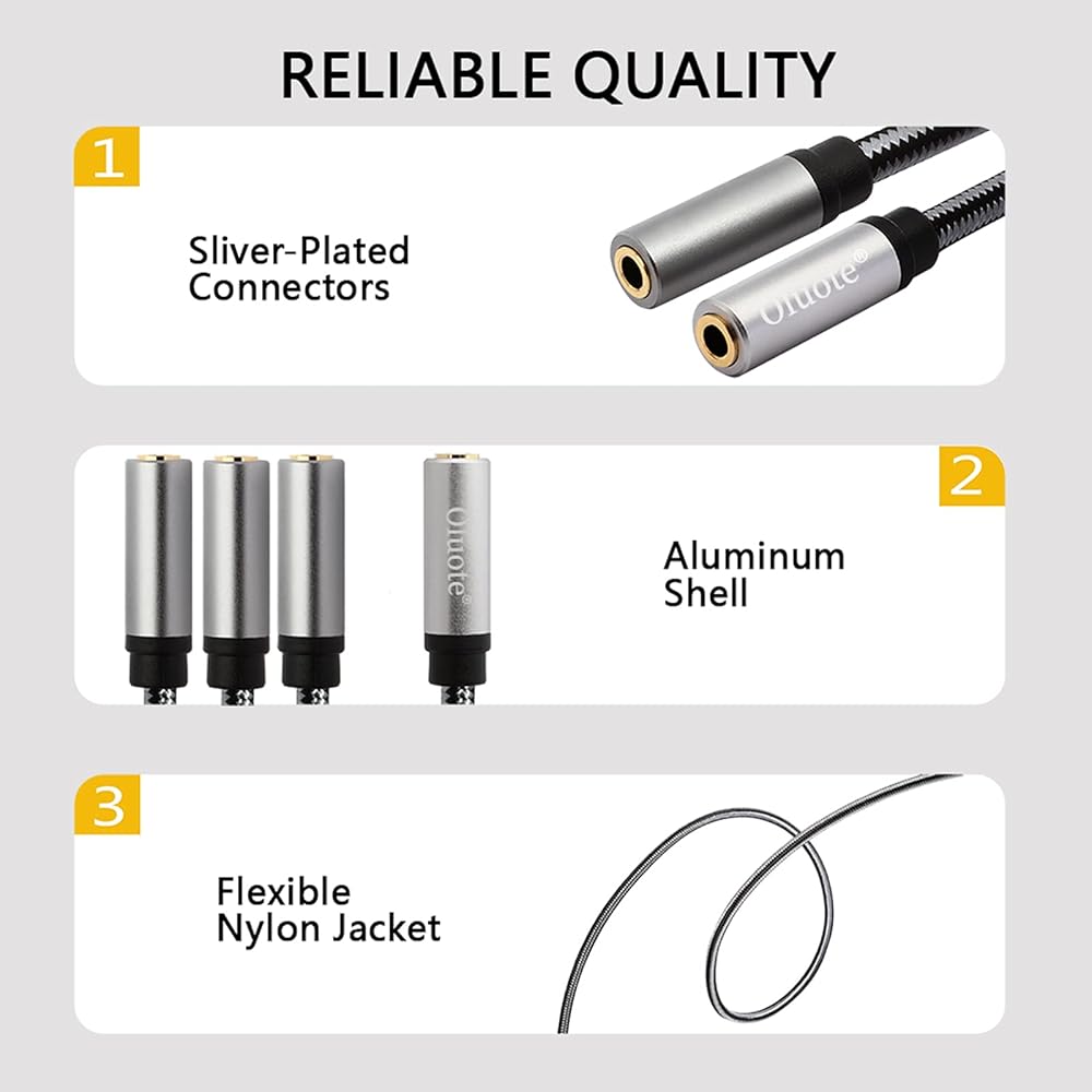 توافق واسع: 3.5 ملم أنثى إلى 3 منافذ كابل HiFi احترافي مساعد ستيريو، مناسب جدًا لأي معدات منفذ صوت 3.5 ملم. على سبيل المثال: الهاتف الذكي، وسماعات الرأس، والكمبيوتر اللوحي، والمسرح المنزلي، ومكبرات الصوت.
