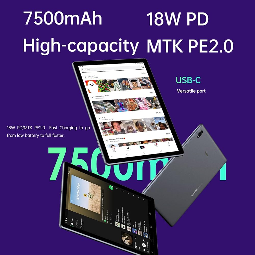 【بطارية تدوم طويلاً بقدرة 7500 مللي أمبير في الساعة 】نضع بطارية ذات سعة كبيرة تبلغ 7500 مللي أمبير في الساعة في الجسم النحيف للكمبيوتر اللوحي. نظرًا لتقنية المعالجة 12 نانومتر المتقدمة وتقنية توفير الطاقة الذكية في MediaTek P90، يصل وقت البث عبر الإنترنت إلى 10 ساعات، ويصل تشغيل الفيديو المحلي إلى 14 ساعة مذهلة. يدعم الشحن السريع بقوة 18 وات PD/MTK PE2.0 ثنائي البروتوكول، مما يجعل تجربة شحن الجهاز اللوحي أكثر سلاسة.