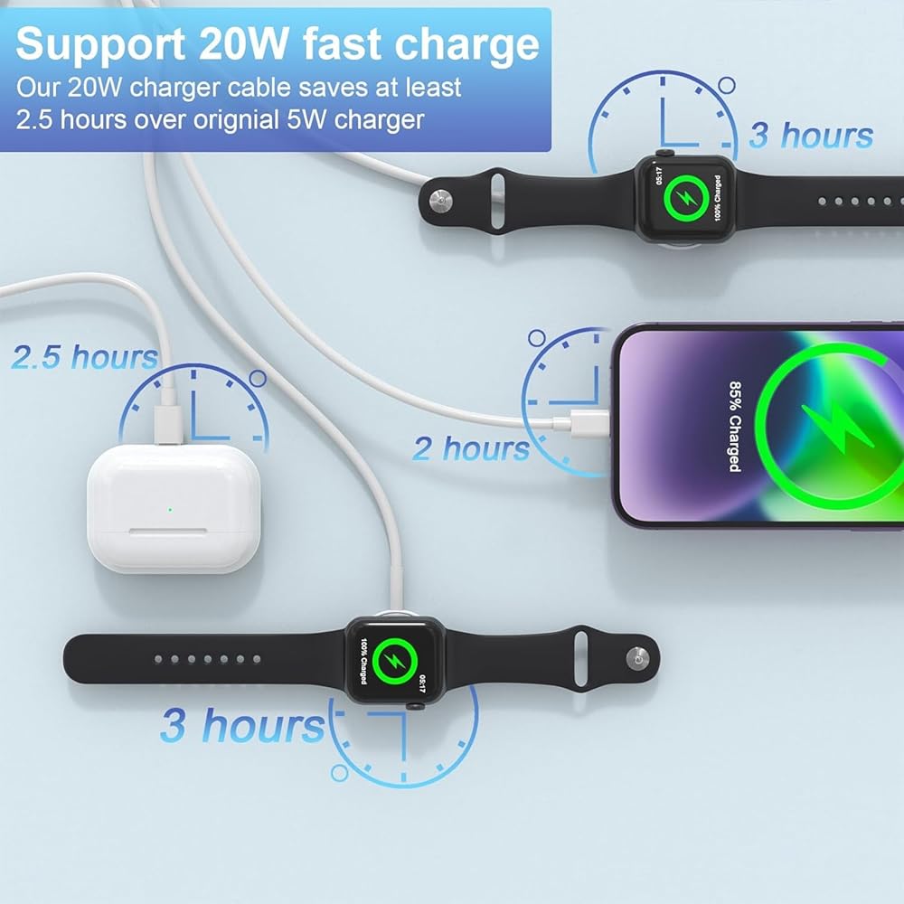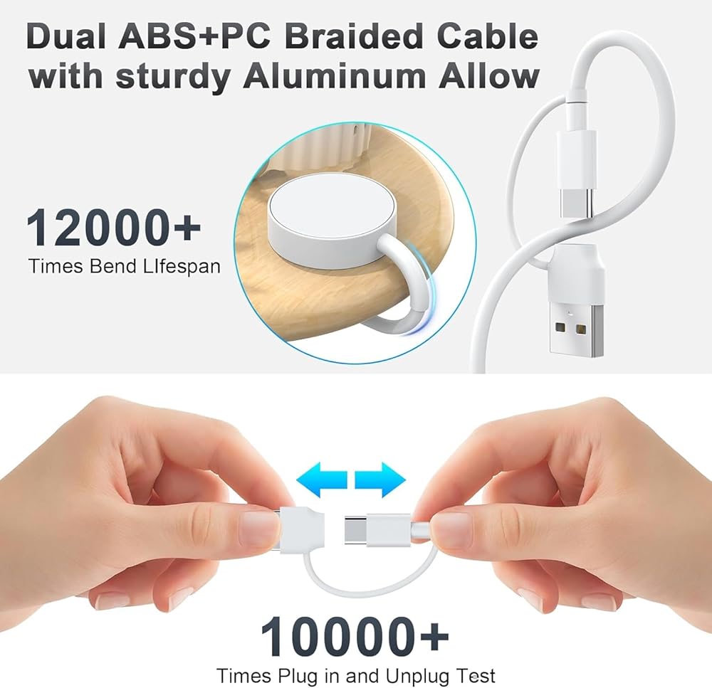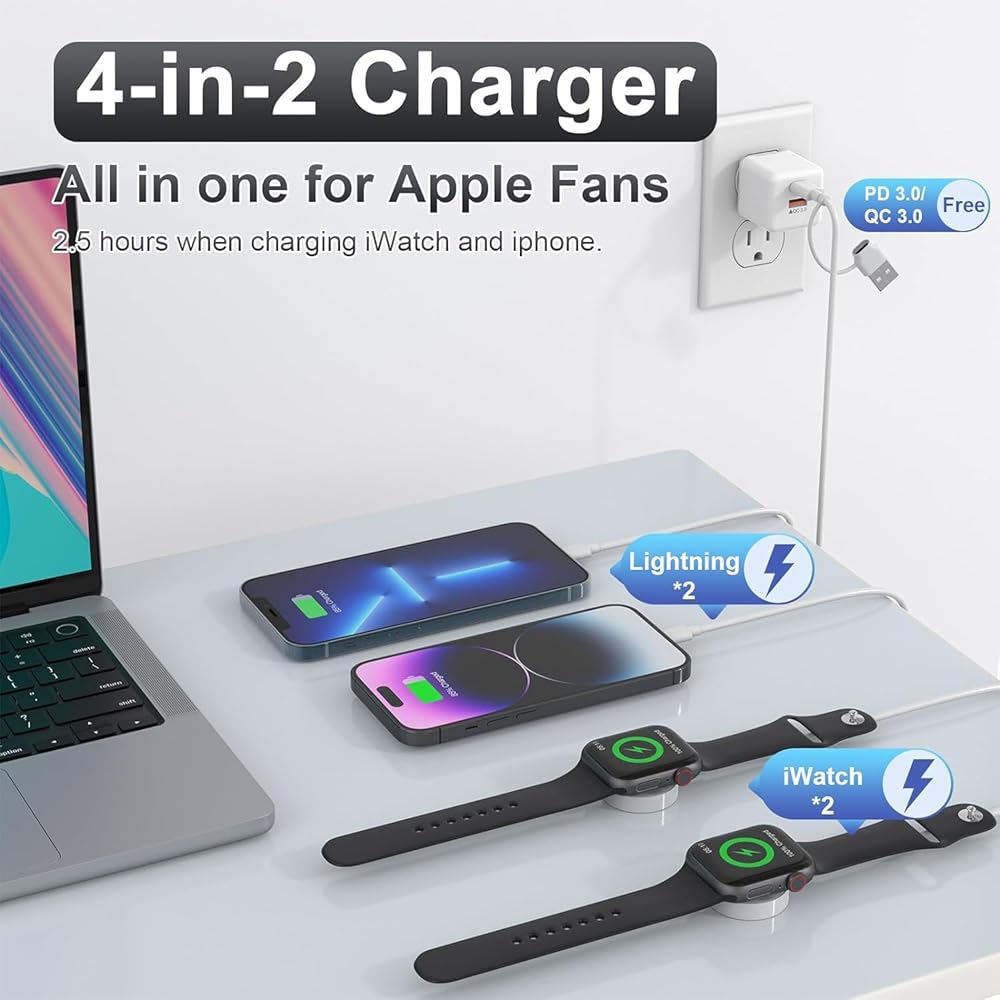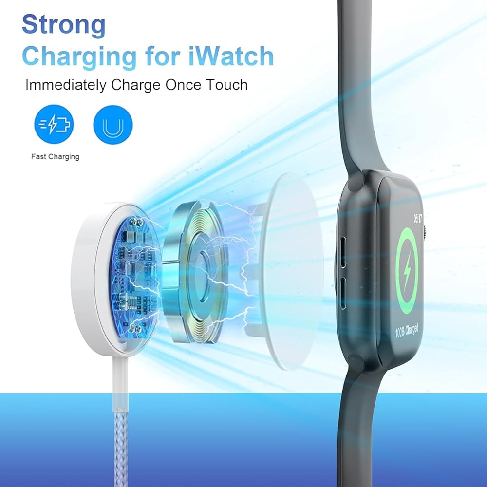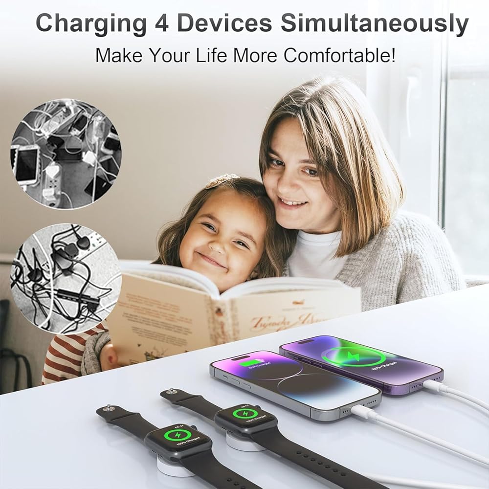 • ✨【تصميم متعدد الاستخدامات لساعة Apple وشاحن الهاتف 4 في 2】مع شاحن ساعة Apple 4 في 2 USB C، لم تعد بحاجة إلى كابلات متعددة تشوش مساحتك - كابل شاحن ساعة iPhone واحد يلبي جميع احتياجاتك! يتميز كابل شحن iwatch المبتكر الخاص بنا بأربعة موصلات - شاحن الساعة المغناطيسي*2 وLightning*2 - كل ذلك في تصميم واحد مناسب. شاحن Apple Watch متعدد السفر من Apple اشحن ما يصل إلى 4 أجهزة في نفس الوقت واستمتع بأسلوب حياة أكثر بساطة وكفاءة.