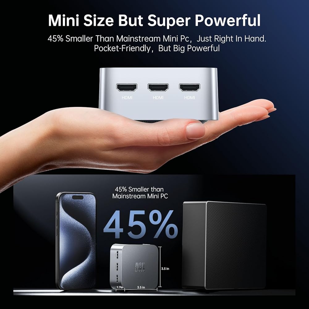 [3 HDMI Ports & 2 Ethernet] ACEMAGICIAN Mini PC T8 Plus 12th Gen N95(up to 3.4GHz), 16GB LPDDR5 512GB SSD Desktop Computer, Win 11 Pro, 4K 3-Screen Display, 207g Weight, 2.4/5G WiFi, Bluetooth 4.2