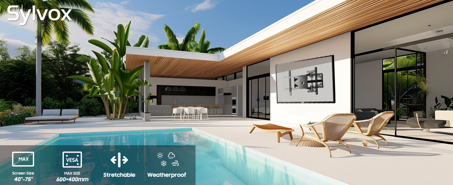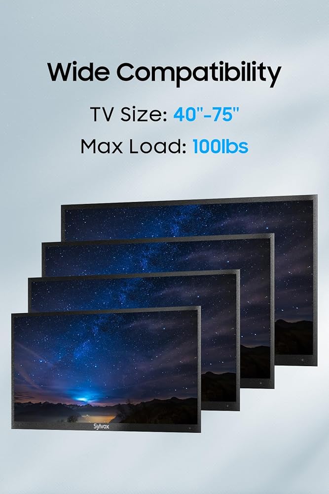 【حامل تلفزيون عالمي】 حامل التثبيت على الحائط Sylbox مناسب لمعظم أجهزة التلفاز 40 بوصة - 75 بوصة ومتوافق مع أجهزة التلفاز VESA300x200 مم، 300x300 مم، 400x200 مم، 400x400 مم، و600x400 مم. هذا الدعامة مناسب للجدران الرأسية المبنية من هياكل أعمدة الحائط الخشبية أو هياكل البناء (الخرسانة الصلبة).