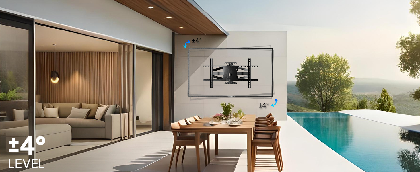 【مرونة قوية】 تم تصميم دعامة الحائط التلفزيونية ذات الحركة الكاملة هذه بإمالة +8 درجة/-5 درجة، وتعديل أفقي بمقدار ± 4 درجة، ودوران بمقدار ± 80 درجة لتحقيق أقصى قدر من المرونة. يمكن أن تمتد الأذرع المفصلية الستة المرنة إلى 19.6 بوصة وتتراجع إلى 2 بوصة. اضبطه وفقًا لزاوية المشاهدة المريحة للحصول على أفضل تجربة مشاهدة.