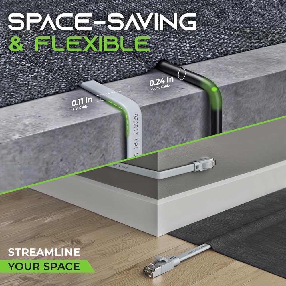 موفر للمساحة ومرن - تم تصميم كابل FLAT RJ45 الخاص بنا ليناسب البيئات عالية الكثافة، مما يوفر المرونة وفوائد توفير المساحة لتصميم السلك المسطح. مثالي للتركيبات السرية، فهو يمتد بسهولة على طول الجدران والحواف والزوايا وتحت السجاد أو السجاد لإخفاء سلس. قل وداعًا للعقد والأسلاك المتشابكة مع هذا الحل متعدد الاستخدامات.