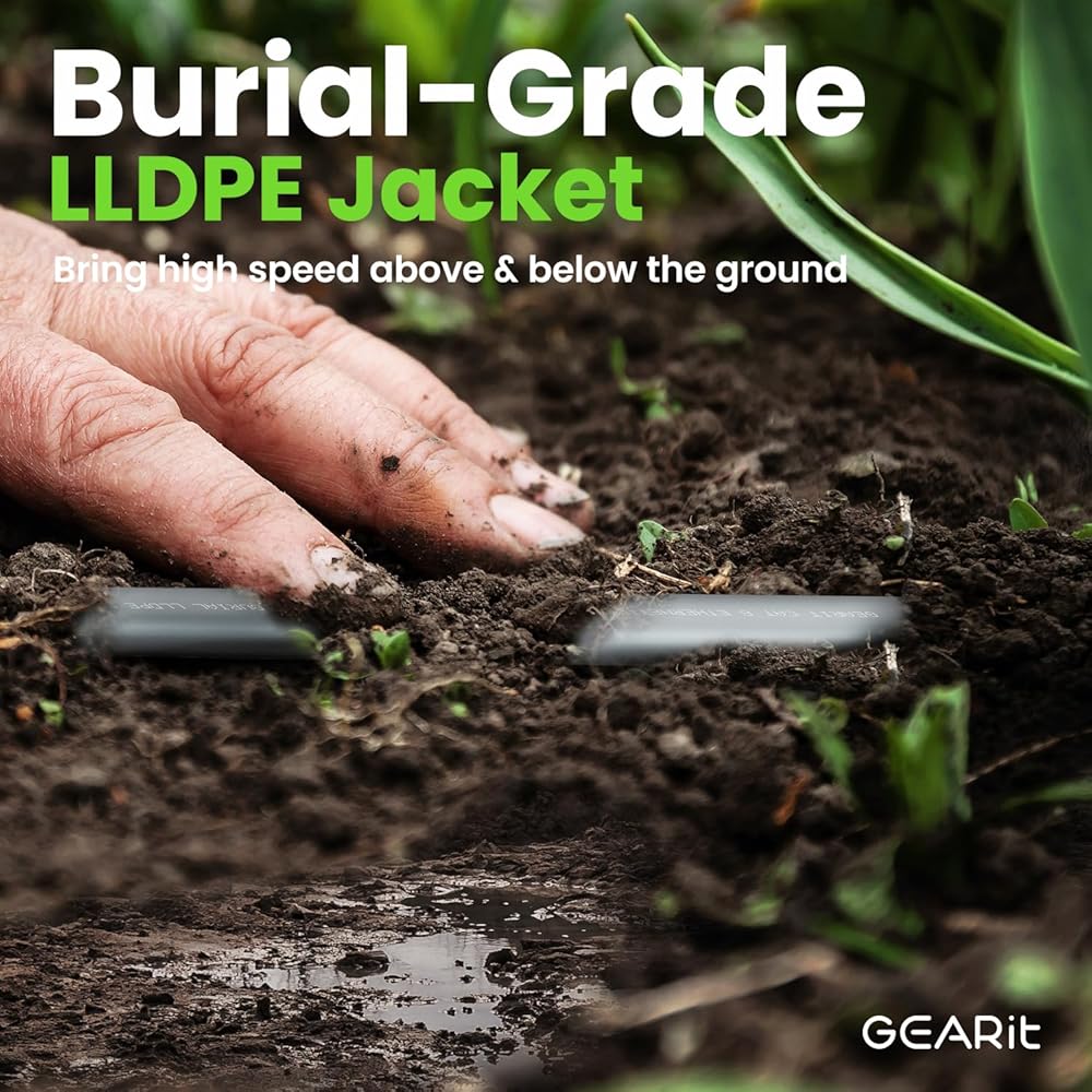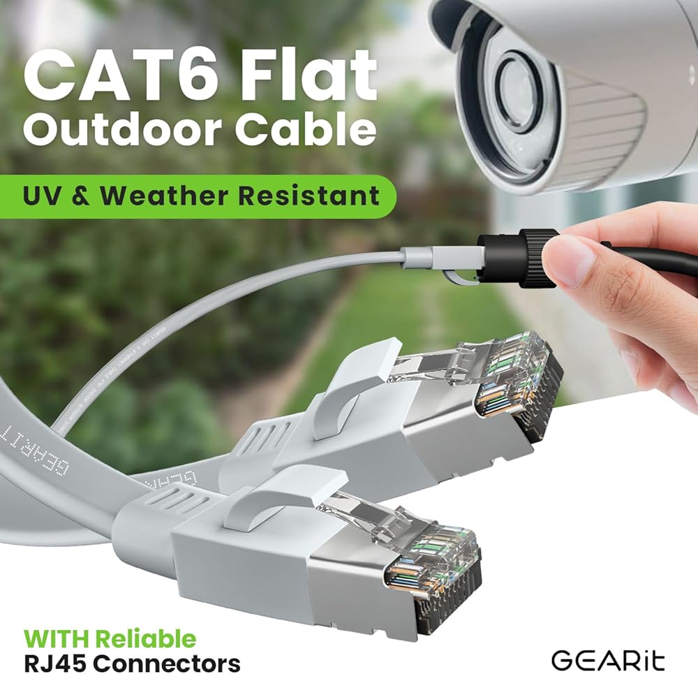 كابل إيثرنت مسطح خارجي من GearIT Cat 6 (60 قدمًا، رمادي) سترة LLDPE مُصنفة للدفن المباشر - داخلي Cat6 محمي FTP بسرعة 10 جيجابت في الثانية شبكة كمبيوتر ألعاب عالية السرعة RJ45 سلك توصيل بدون تشابك للإنترنت