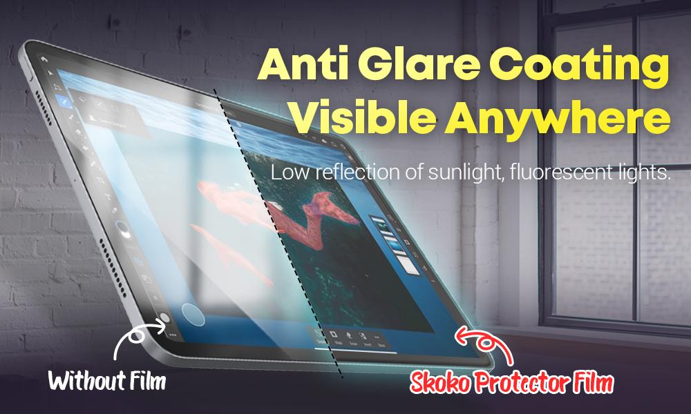 يتميز واقي الشاشة بطبقات مضادة لبصمات الأصابع ومضادة للوهج. مع طلاء AG، يمكن للمستخدمين تجربة ملمس ناعم يشبه الورق عند استخدام القلم. فهو يقلل من تآكل طرف القلم، مما يوفر تجربة ناعمة الملمس. بالإضافة إلى ذلك، فهو يقلل من الانعكاسات في أماكن العمل الخارجية، مما يساعد على تخفيف إجهاد العين.