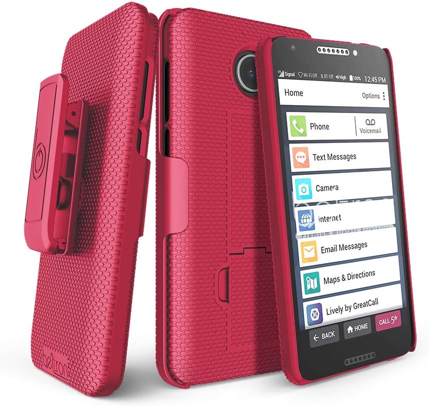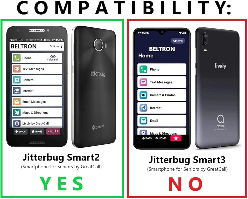 تتميز مجموعة الحافظة والحافظة بمشبك الحزام BELTRON بمظهر نحيف للغاية، ولمسة نهائية مطاطية وفتحات أزرار مفتوحة لسهولة الوصول إلى جميع الوظائف وأدوات التحكم في جهاز GreatCall Jitterbug Smart2.
