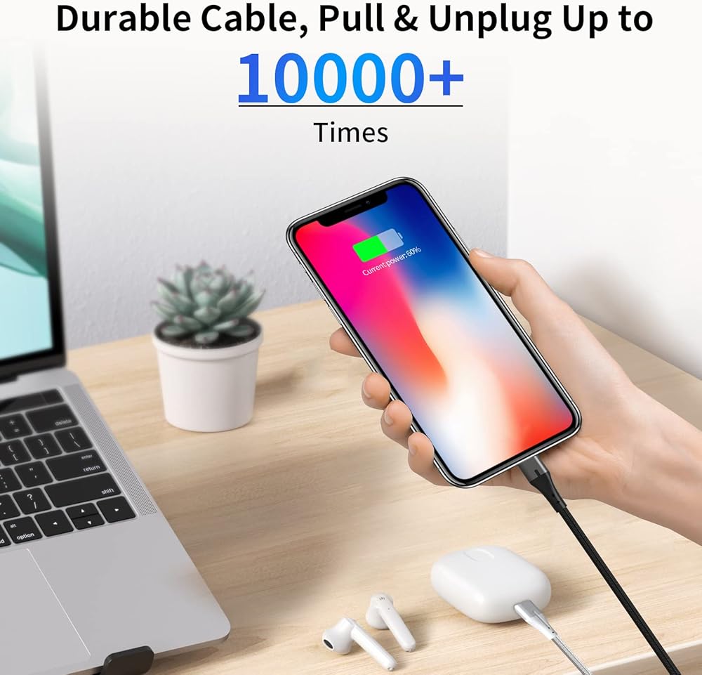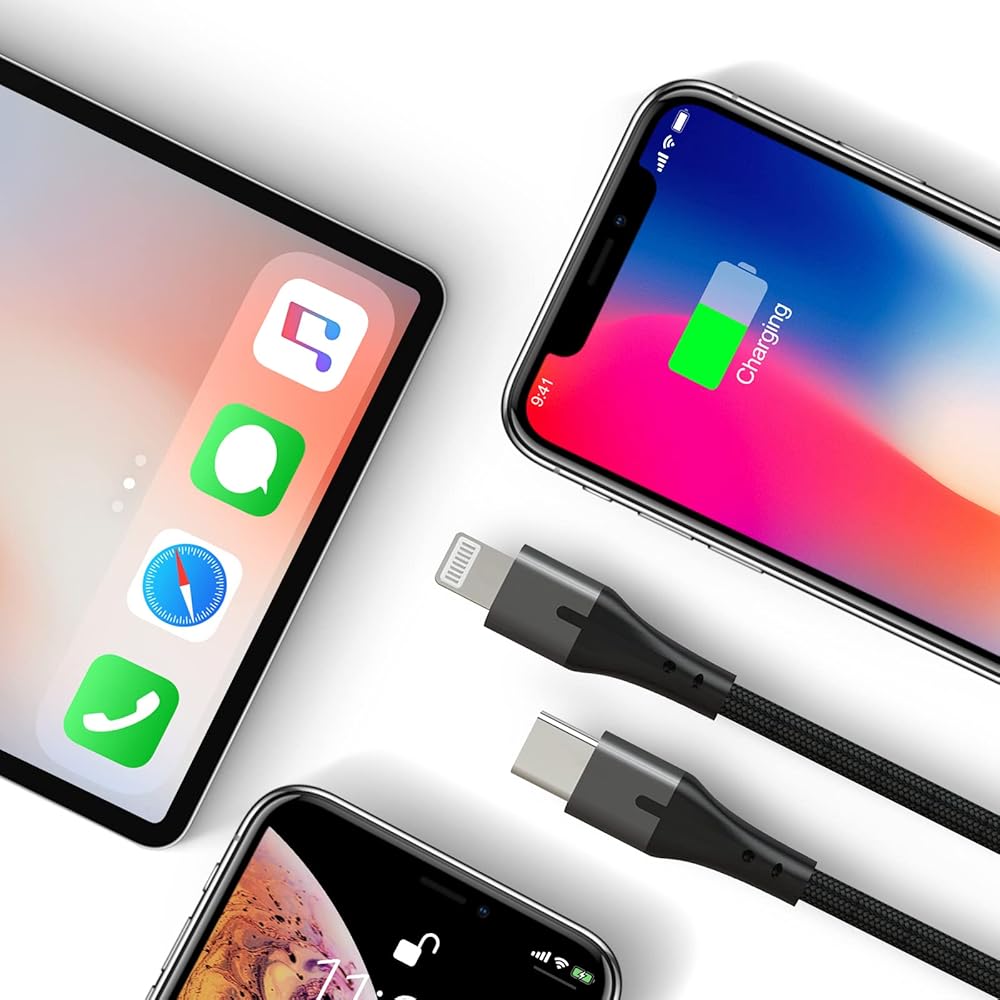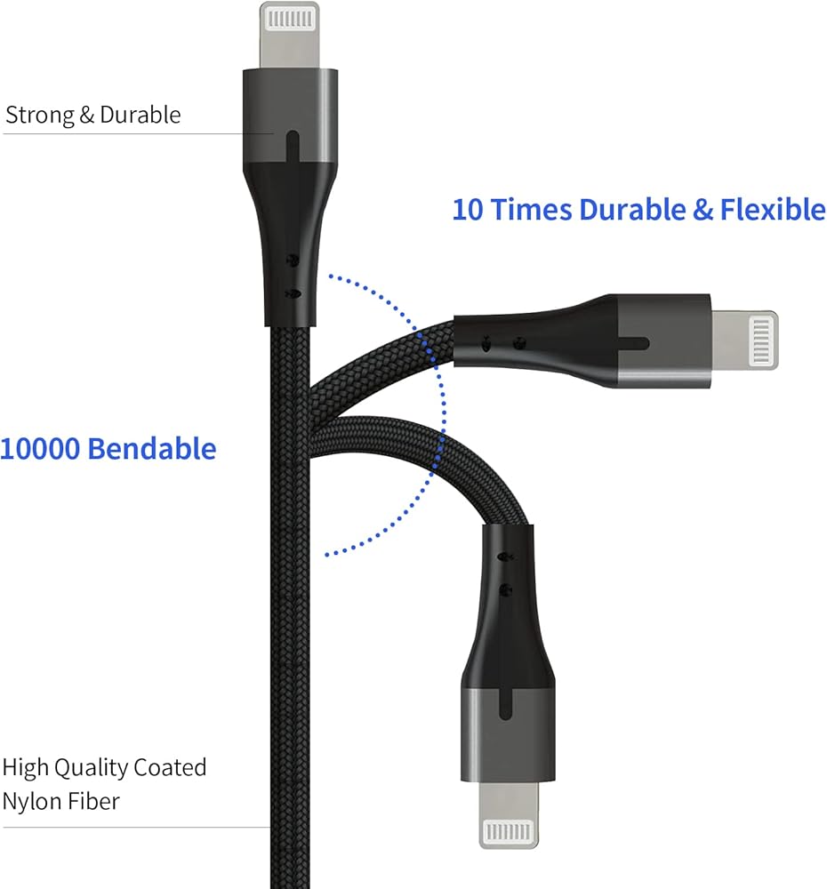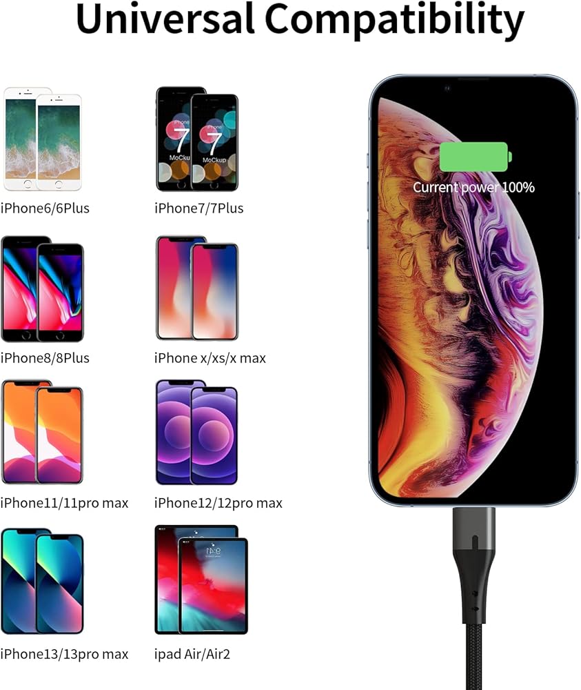 Material: Tin-Copper + Nylon Braided Surface Length: 3 Feet/5 Feet Compatible with: Compatible with iPhone 13, iPhone 12, iPhone X, iPhone 8, iPhone 8 Plus, iPhone 7 Plus, iPhone 7, iPhone SE, iPhone 6s Plus, iPhone 6s, iPhone 6 Plus, iPhone 6, iPhone 5s, iPhone 5, iPad Pro(9.7-inch), iPad Pro(12.9-inch), iPad Air 2, iPad Air, iPad(5th generation), iPad(4th generation), iPad mini 4, iPad mini 3, iPad mini 2, iPad mini. Package Include: 2*Cables
