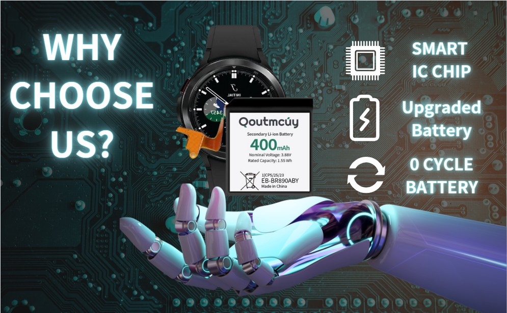 بطارية بديلة EB-BR890ABY لساعة Samsung Galaxy Watch4 Classic SM-R890 SM-R895 (46 ملم)/Galaxy Watch4 SM-R870 SM-R875 SM-R875U (44 ملم) مع مجموعة أدوات إصلاح احترافية (400𝒎𝑨𝒉/3.88𝑽)