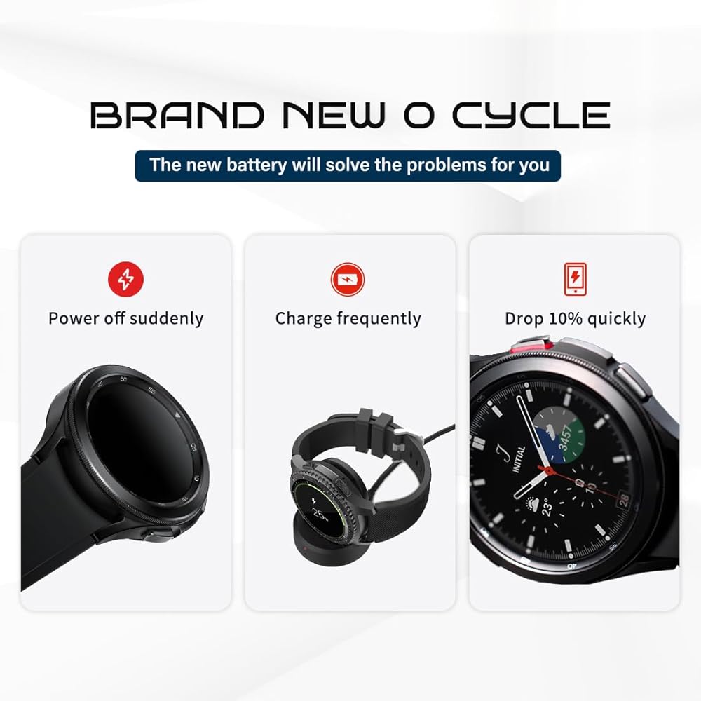 • ❤[سعة عالية]: بطارية بديلة لساعة Samsung Galaxy Watch4 Classic 46 مم، [400 مللي أمبير] سعة عالية، تصل إلى 1000 دورة شحن، سرعة عالية وشحن فعال. تعمل الترقيات على تخزين المزيد من الطاقة، وتوفير المزيد من وقت الاستعداد، وزيادة عمر البطارية، وتقليل وقت الشحن. تستخدم كل بطارية أداة اختبار السعة لضمان السعة العالية والكفاءة العالية.