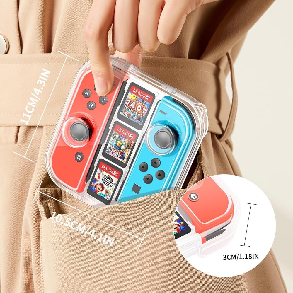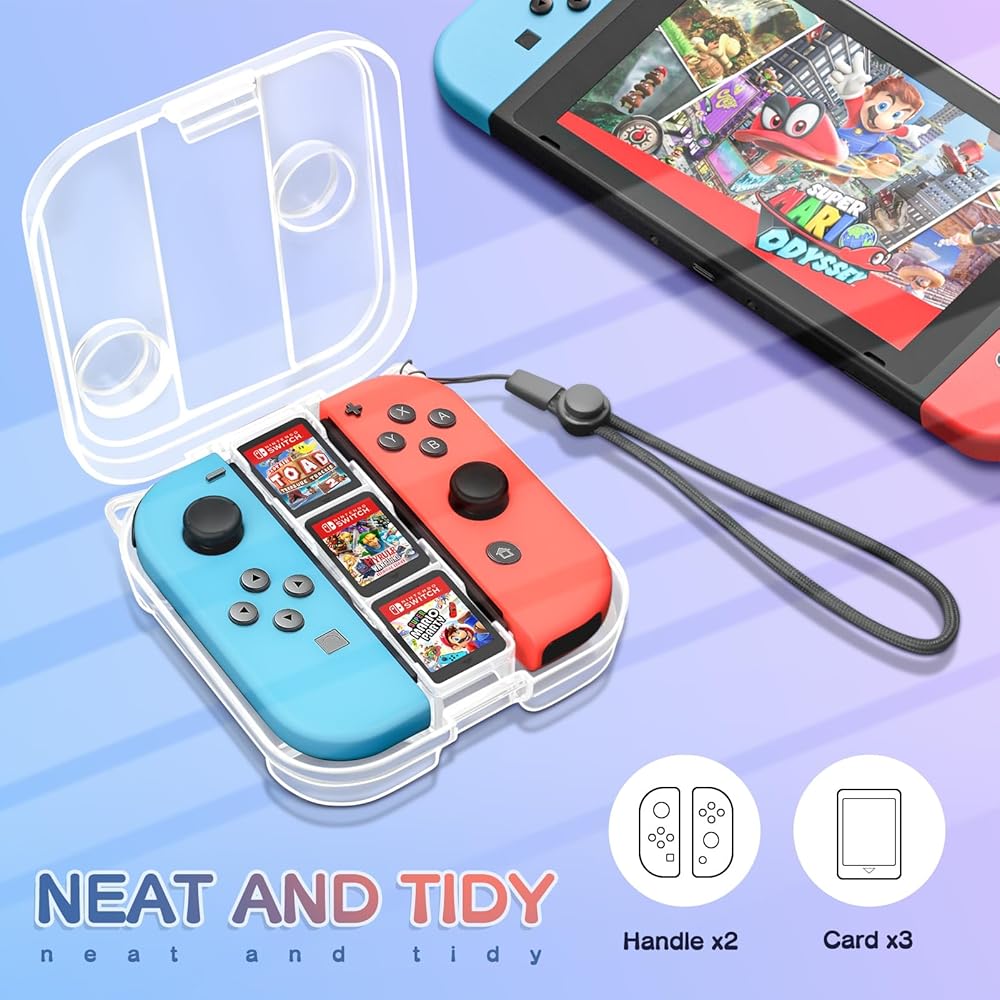 حافظة FYY Switch Joycon متوافقة مع Nintendo Switch Joy-Con - حافظة Joycon محمولة مقاومة للغبار مع 3 حاملات بطاقات ألعاب وحزام معصم، حقيبة سفر لملحقات Nintendo Switch Joycon