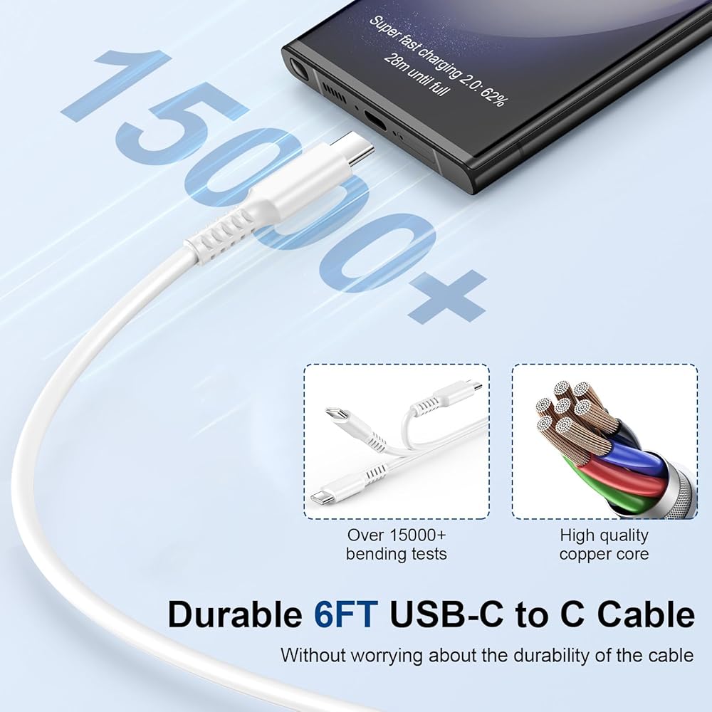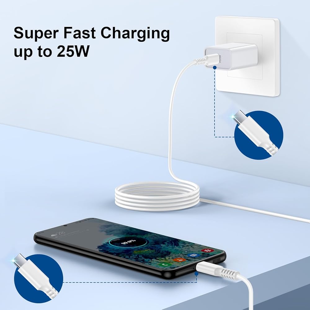 Fast Charging for Moto Edge 2024 G Stylus 5G Edge 50 Ultra X50,25W USB C Fast Wall Charger with 6ft Type C to C Cable for Samsung Galaxy A15 A14 A13 S24 S23 S22 S21 S20 S10 A55 A54 A53 Note 20