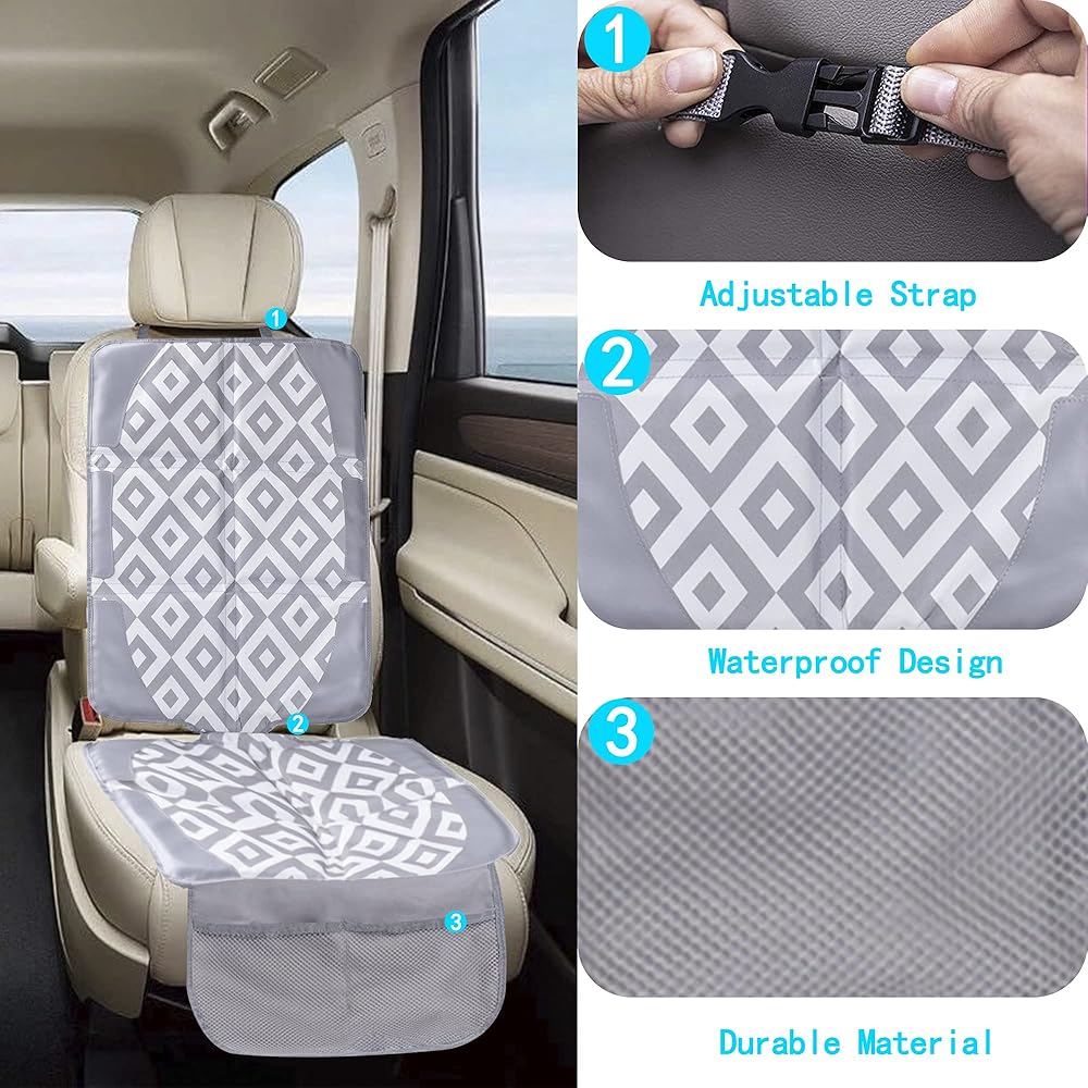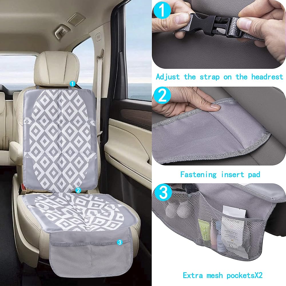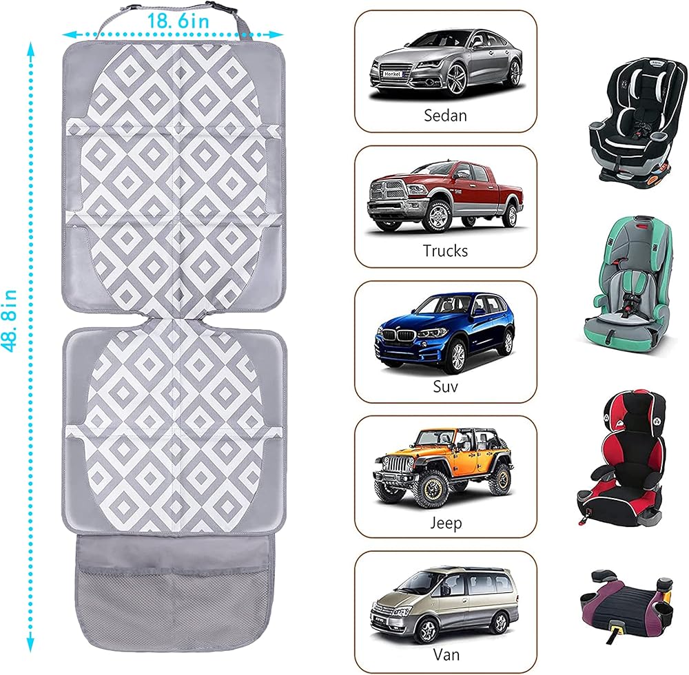 واقي مقعد السيارة من فوربي لغطاء مقعد السيارة للأطفال|بطانة سميكة غير قابلة للانزلاق وأكبر حجم تغطية لجميع المقاعد|زوايا معززة من القماش المقاوم للماء من البولي فينيل كلوريد مع جيبين كبيرين للتخزين