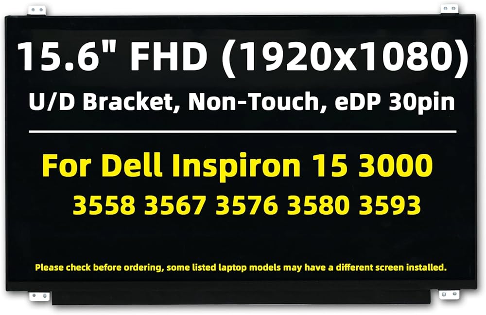 شاشة بديلة متوافقة مع Dell Inspiron 3000 15 FHD 1920x1080، IPS 30Pin، مع دعامة، لوحة عرض LCD LED غير تعمل باللمس مقاس 15.6 بوصة لـ 3558 3567 3576 3580 3593