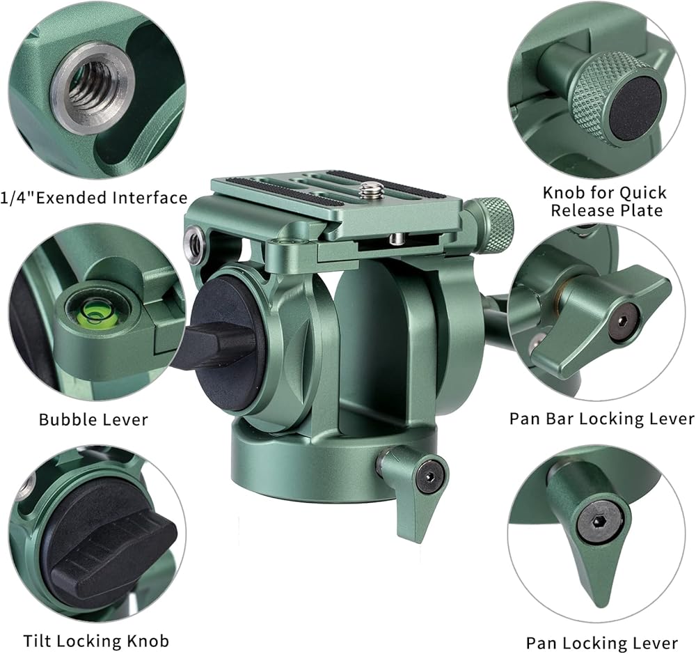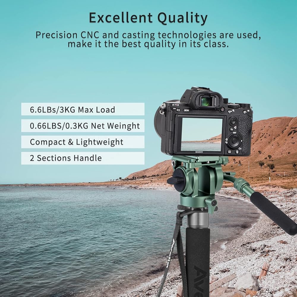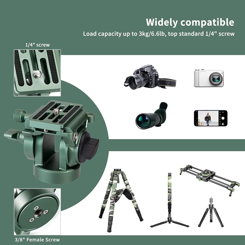 رأس فيديو Avella، رأس حامل ثلاثي مع لوحة إطلاق سريعة لـ Arca Swiss ورافعة قابلة للتعديل، لكاميرا Canon Nikon Sony Olympus Panasonic DSLR المدمجة - V502 Green
